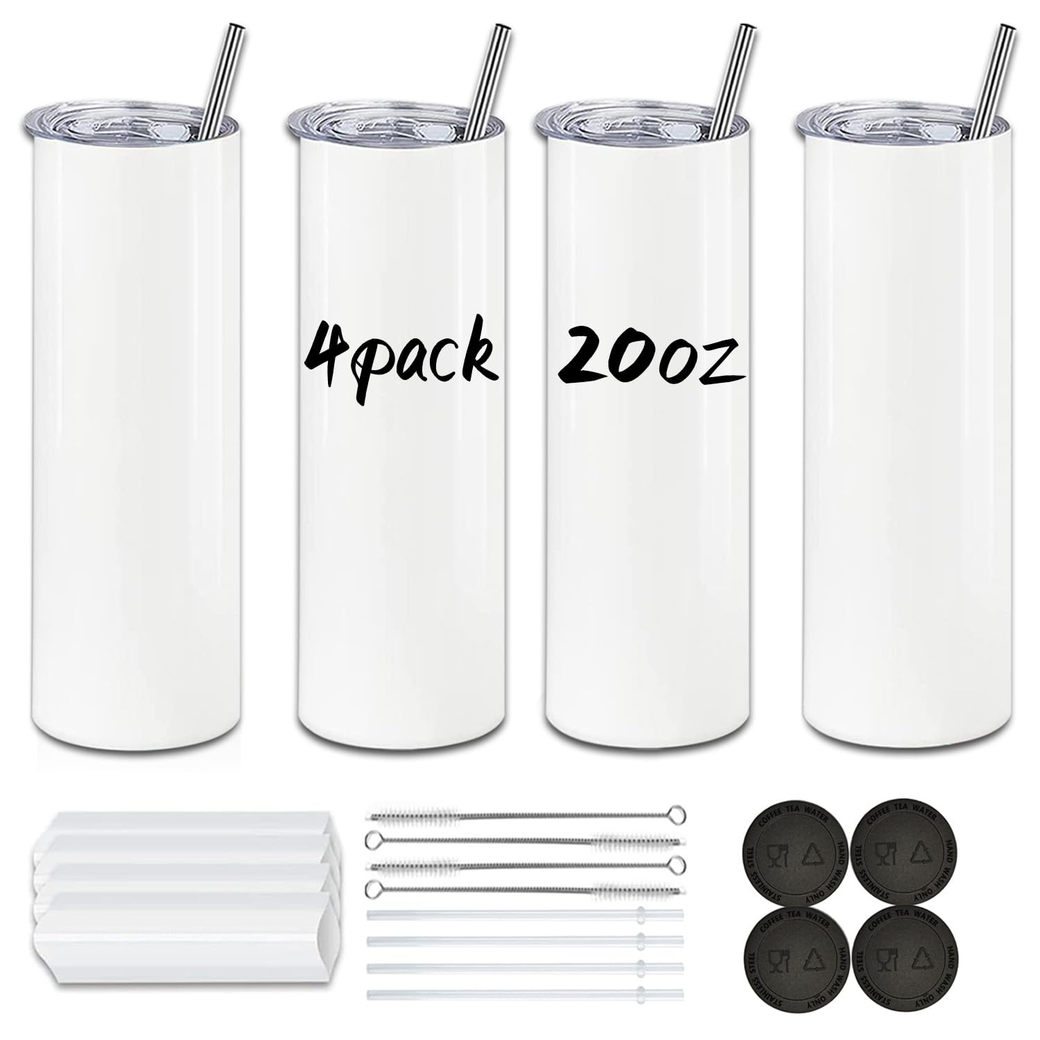 Kocdam 4 Pack Sublimation Tumblers with Lids and Straws Bulk, 20oz Sublimation Tumbler Blank, Stainless Steel Double Wall Sublimation Tumblers 20 oz Skinny, Polymer Coating for Heat Transfer