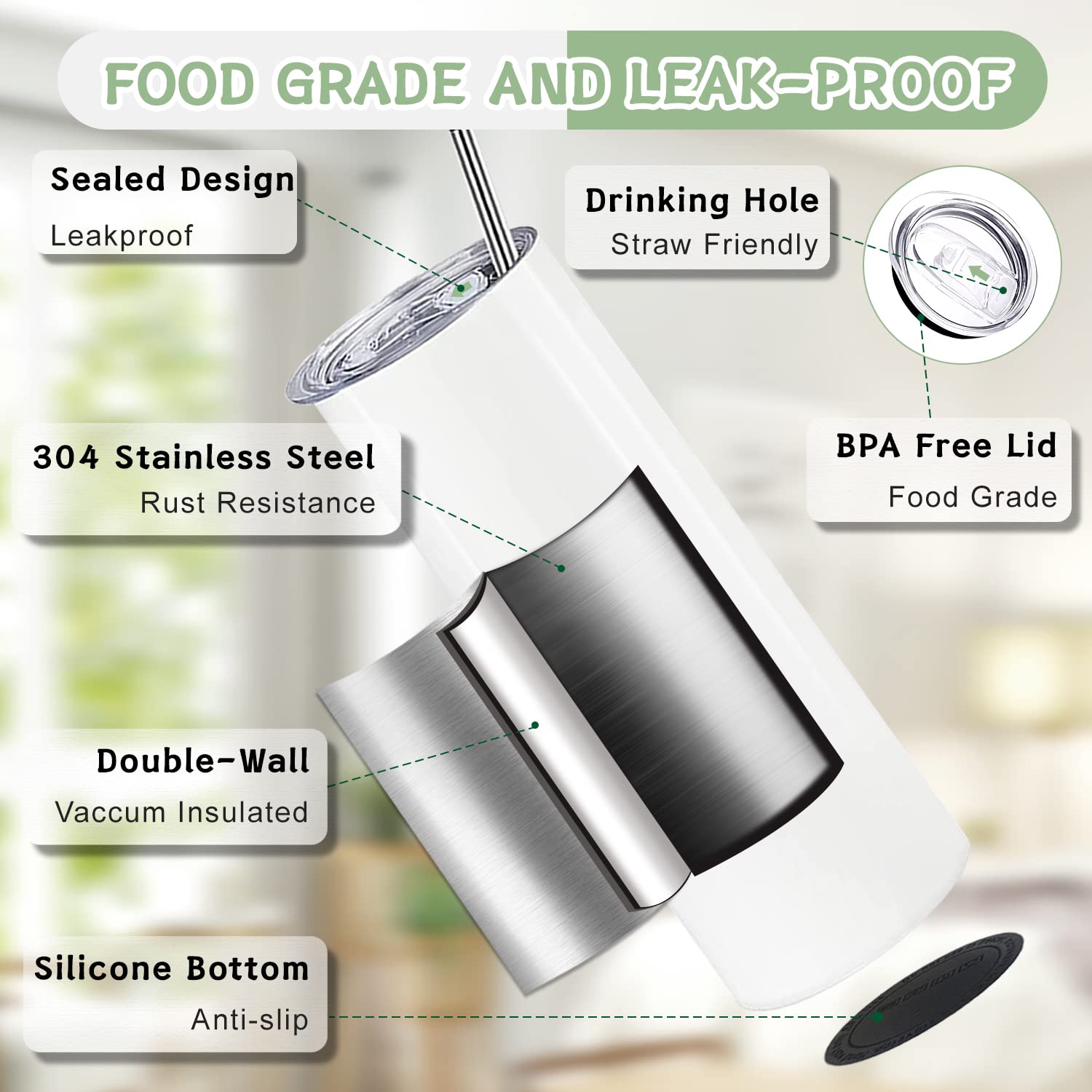 • 20oz Sublimation Tumbler Skinny Straight: This sublimation tumbler adopts absolutely straight body, to wrap the tumbler with your pictures easily using a heat press or a convection oven. So that you can make your own customized gifts for your family or your friends.