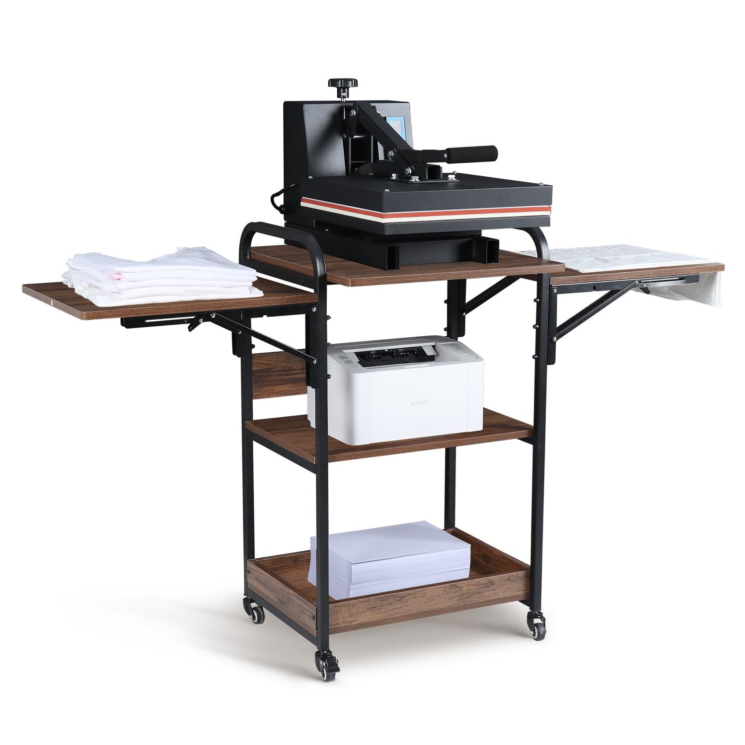 Kokorona 3 Tier Heat Press Table, Movable Heat Press Stand for Storage, Heavy Duty Heat Press Stand with Folding Working Table, Rolling Craft Station for Sublimation Print and Transfer Machine