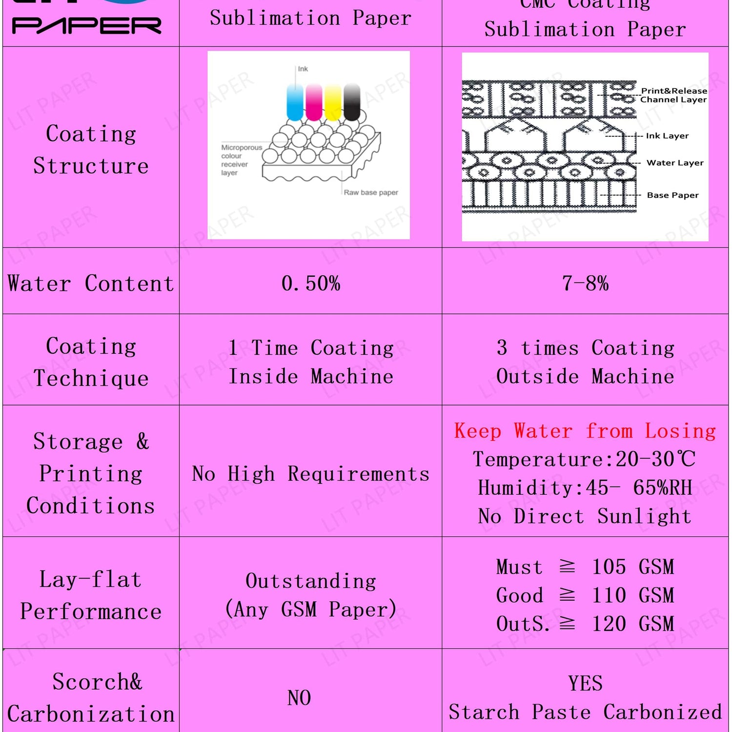 - INSTANT DRY , HIGH TRANSFER RATE&INK SAVING:LIT paper has the high ability to absorb and store the sublimation ink, work like a sponge, very quickly and precisely,then the ink physically released exactly in the position printed. The special structure and minimum water determine the drying time saving, higher transfer rate and precision plus greater ink saving.