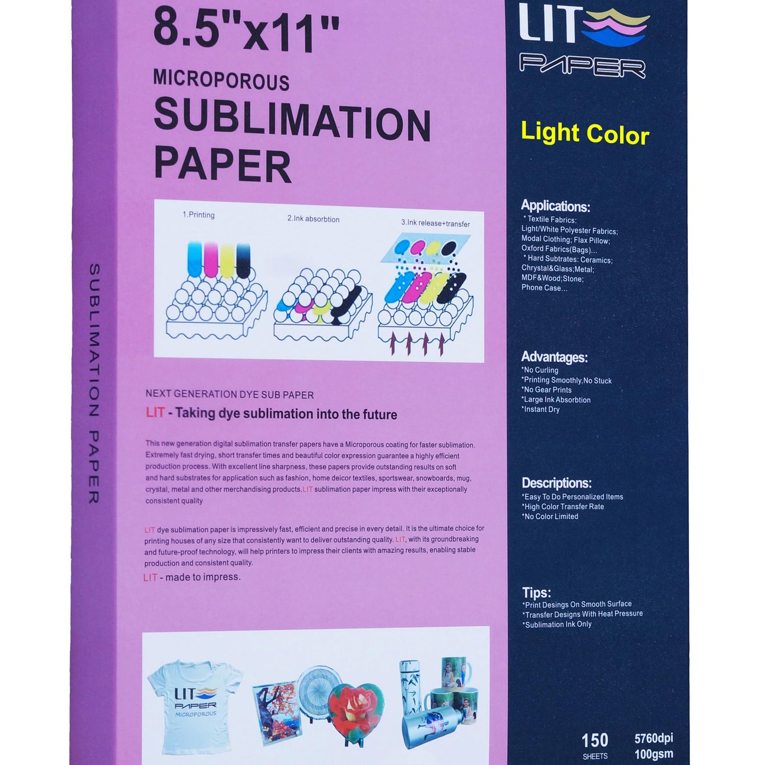 LIT Sublimation Paper 150sheets 8.5x11” 100gsm Letter Size - Heat Press Transfer Paper for Any Epson Sawgrass Ricoh HP Inkjet Printers with Sublimation Ink for Unique Crafts DIY Mugs Tumblers T-Shirts