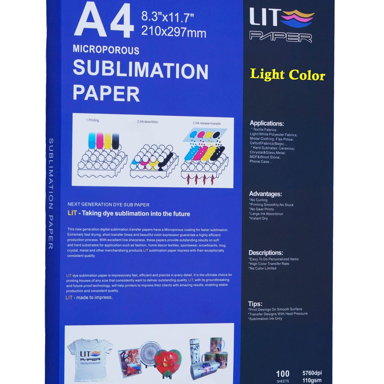 • WARM TIPS:100sheets 110gsm A4 8.3 x 11.7 inch, 210x297mm,Sublimation ink only;Inkjet sublimation printer; Heat press machine;LIT sub paper suitable for shirts,pillow cases,bags,mouse pads;Sublimation blanks like mugs,metals,crystal,key chains,ceramics,phone case,tumblers...must be poly coated in advance, OTHERWISE there will be no transfer!