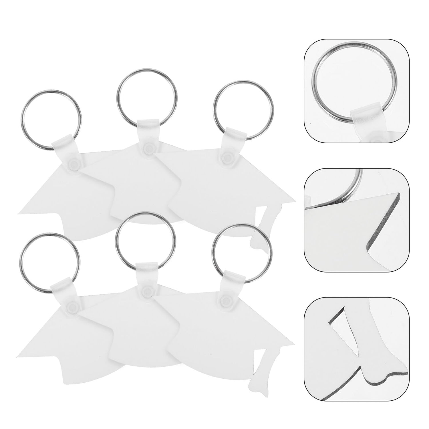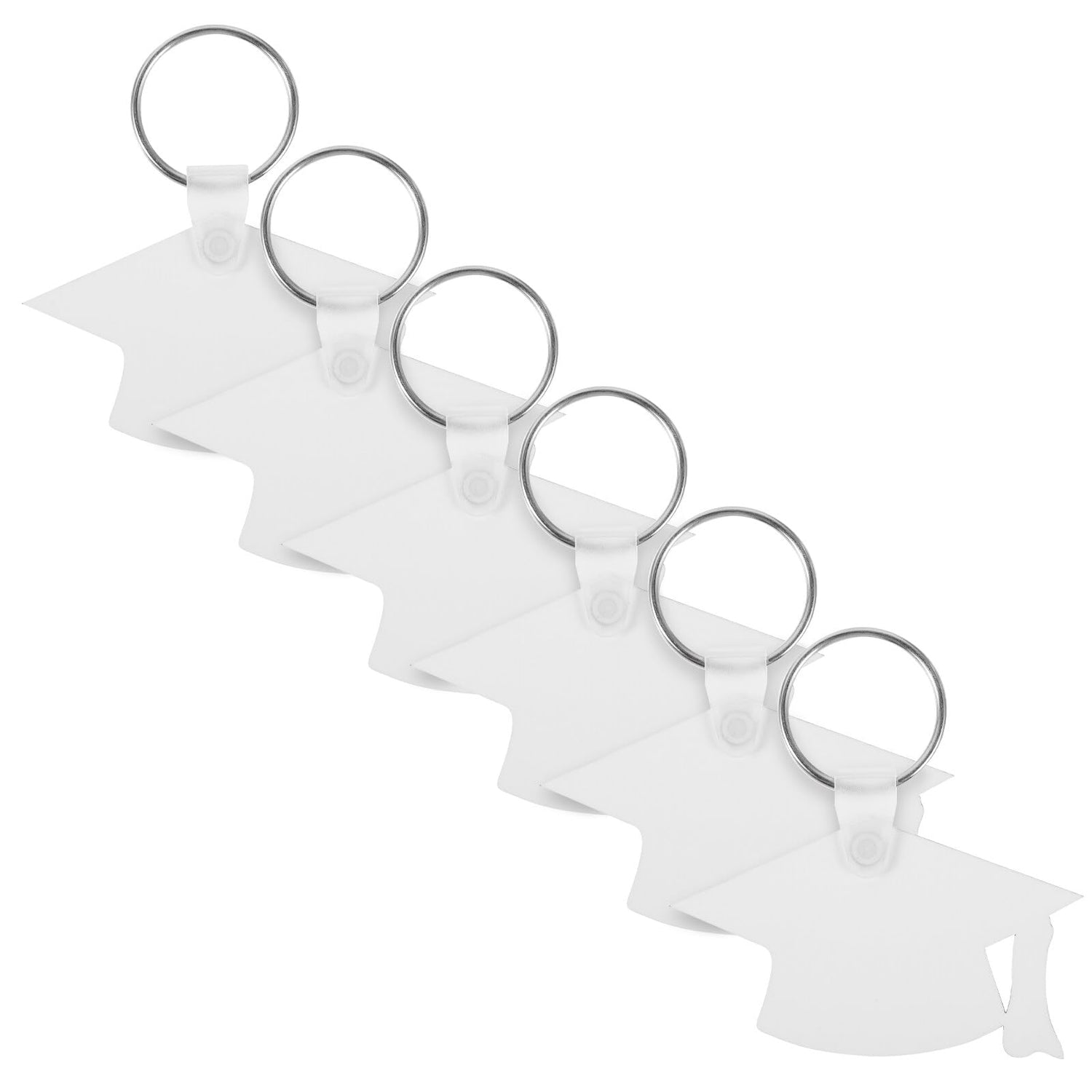 LOGOFUN 6 Pcs Sublimation Keychain Graduation Cap Blanks Heat Transfer Keyring Graduation Gifts for DIY Craft Party Favor (White)