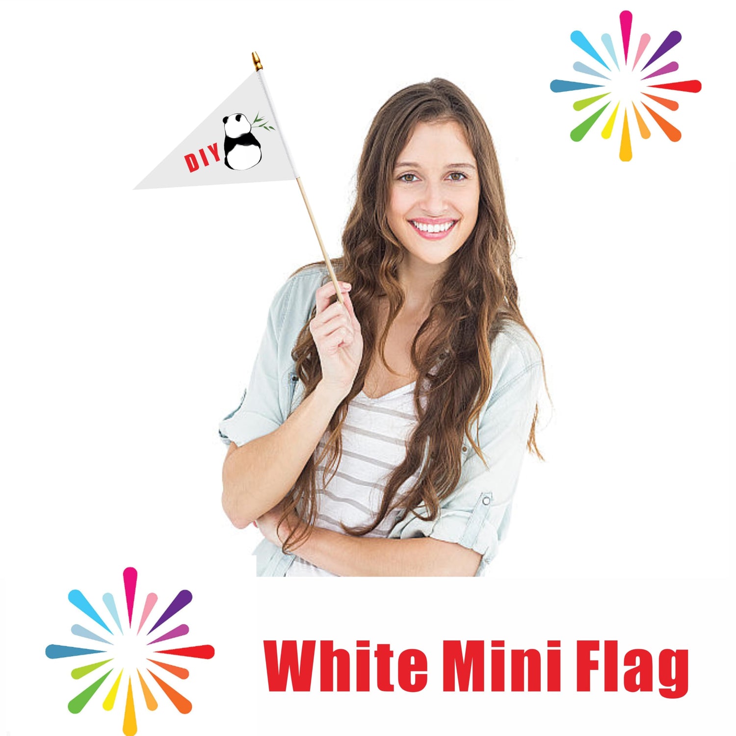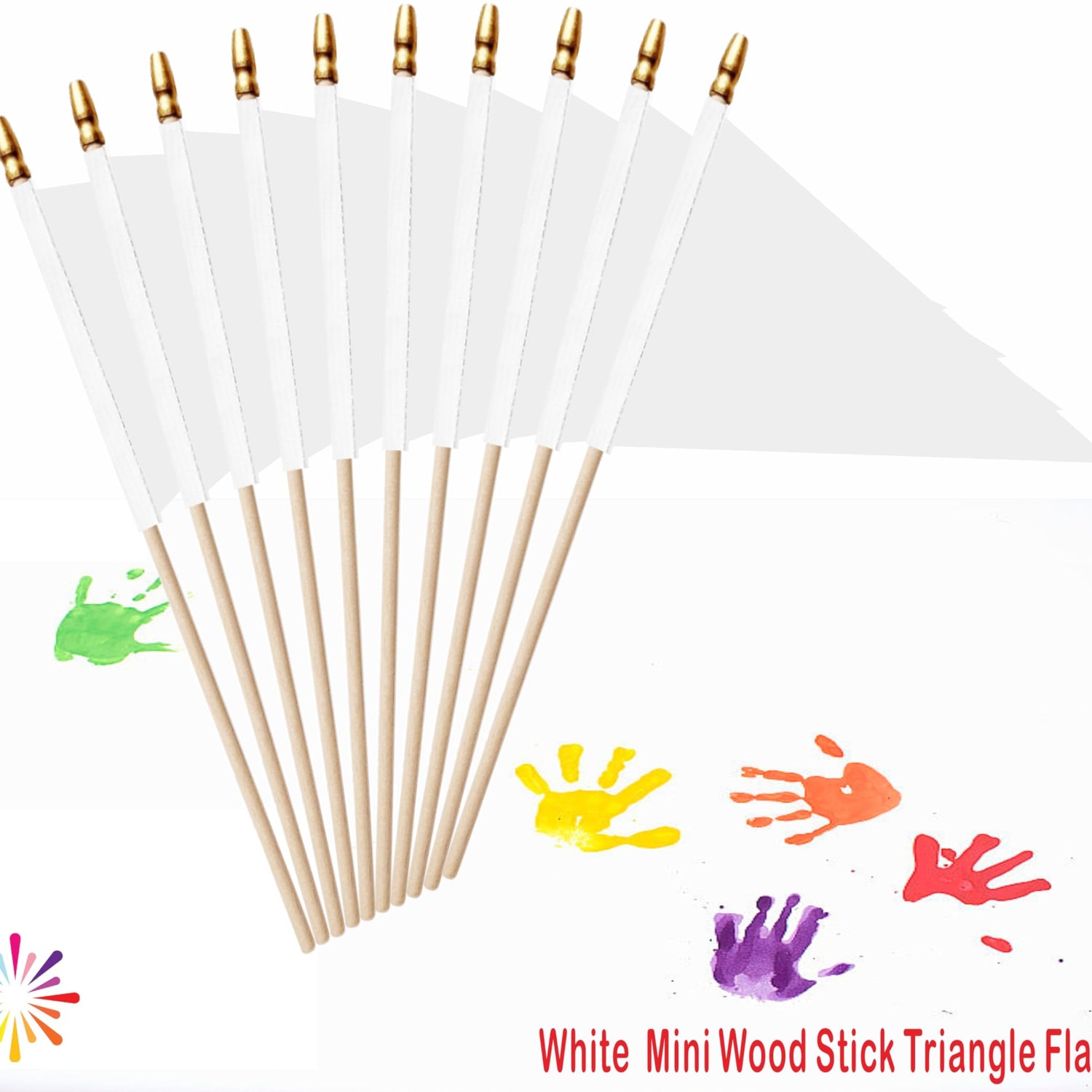 LUSEOAN 20 Pack White Mini Pennant Wood Stick Sublimation Flag Set - 5x8 Inch Solid Color Blank Hand Held Small Miniature Triangle Plain Flags for DIY Graffiti,School,Kids Birthday,Grand Opening