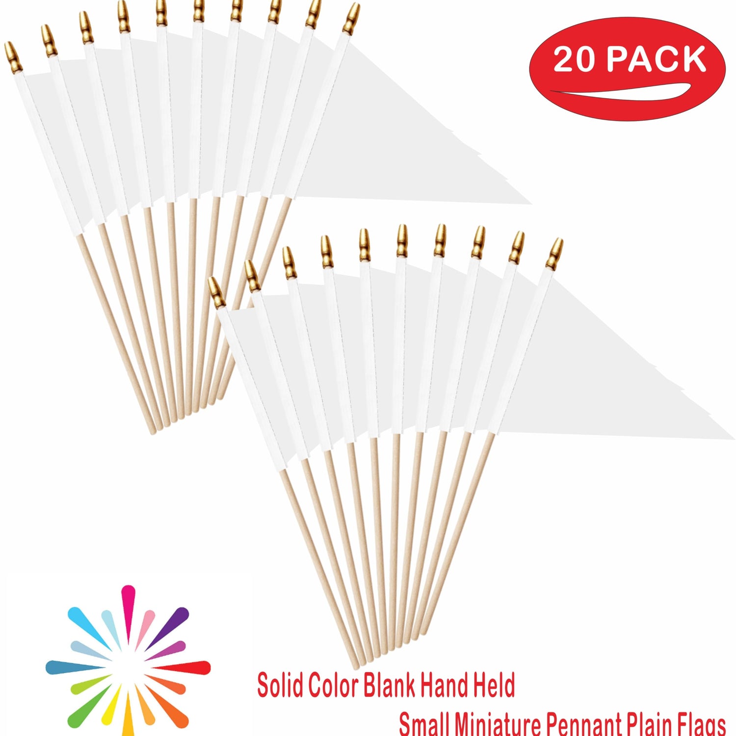 - Size - 12.6 - inch wooden stick, 5.5x8.2 - inch flag, includes white, 20 flags per pack.
