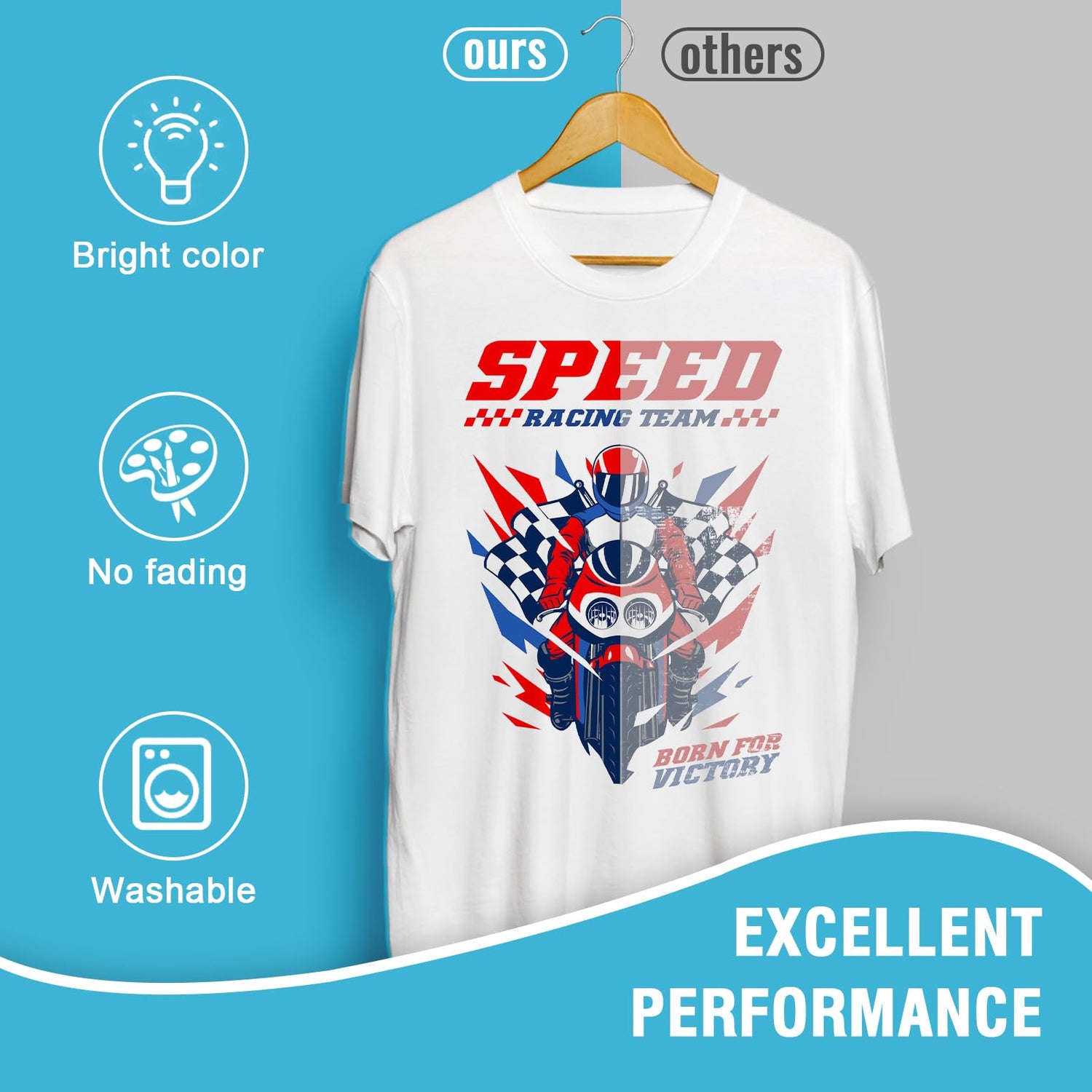 - Performance Features: Achieve up to a 98% transfer rate with efficient ink absorption and rapid drying, ensuring lasting, fade-resistant, and crack-free colors that withstand machine washing. Recommended for use with thermal transfer ink and machines, specifically ideal for the Epson series such as ET-1110, ET-2710, ET-2720, ET-2800, and ET-4700