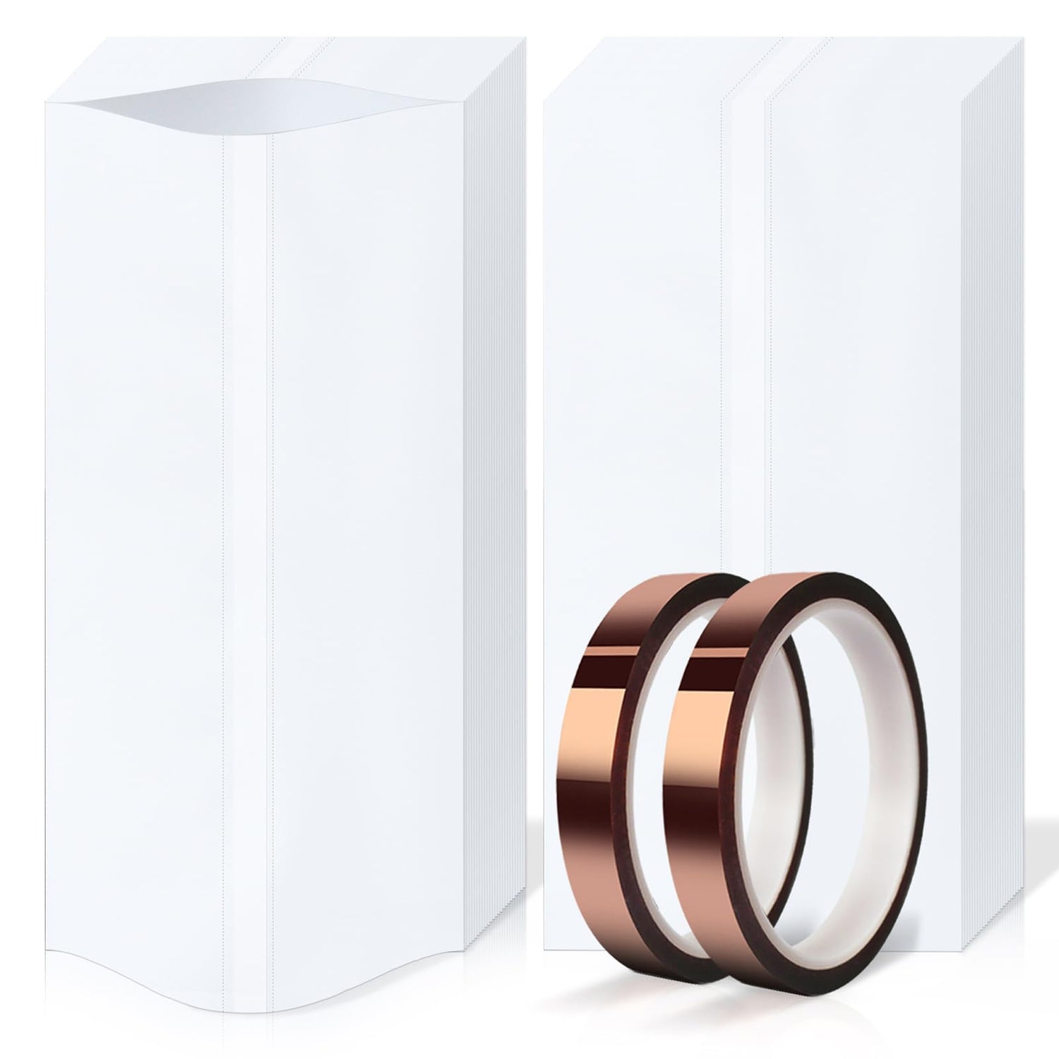 MEBMIK 2 Rolls 10mm x 33m(108ft) Heat Transfer Tape and 50pcs 5 x 10in Shrink Wrap for Sublimation Tumblers,Heat Resistant Tape,Sublimation Shrink Wrap Sleeves,Tumbler Shrink Wrap,20oz
