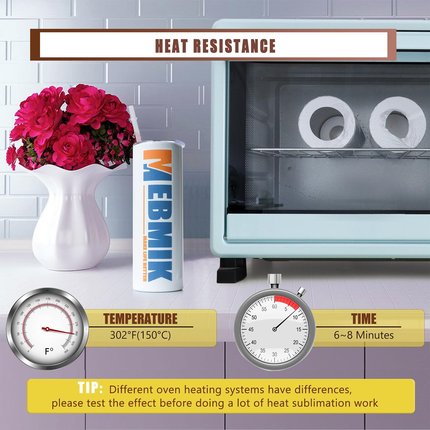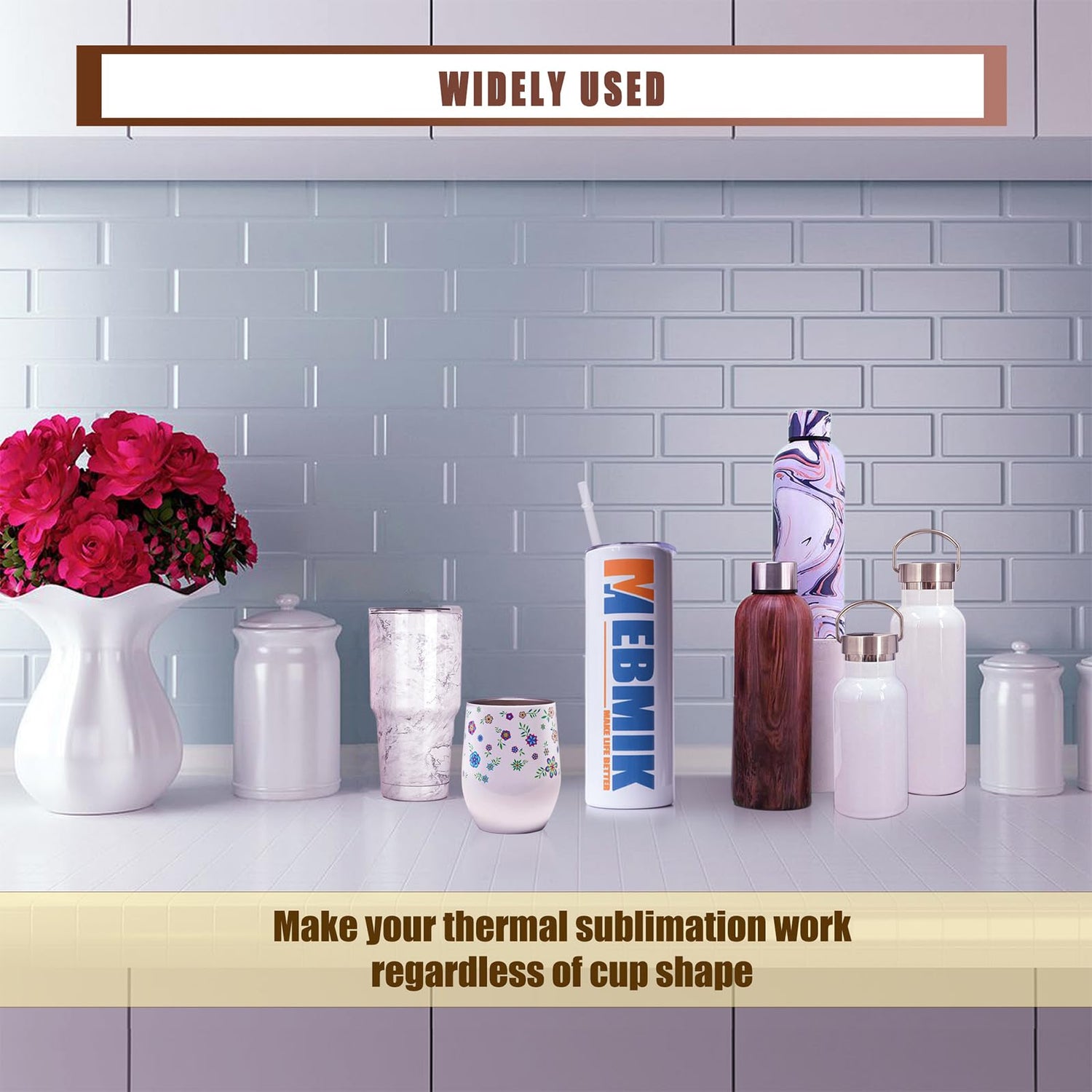 • HOW TO USE: Wrap your design on the cup and fix it with heat resistant tape. Put the sublimation shrink wrap over the cup, heat blower to heat so that the sublimation sleeves for tumblers shrinks and wraps the cup, then put the cup in the sublimation oven and heat it at 302℉(150℃)for 6~8 minutes.