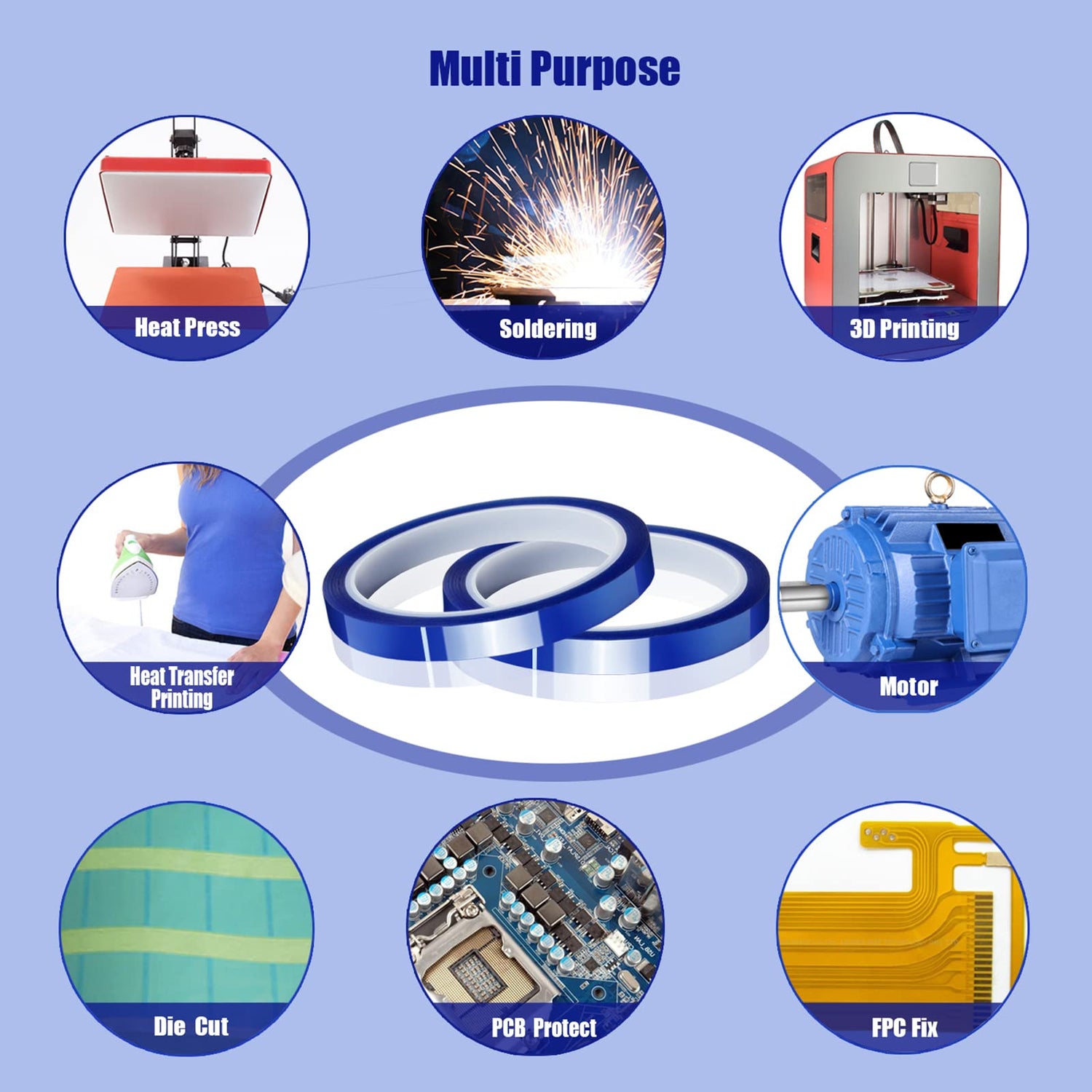 - You will receive a package containing 2 rolls blue heat press tape.