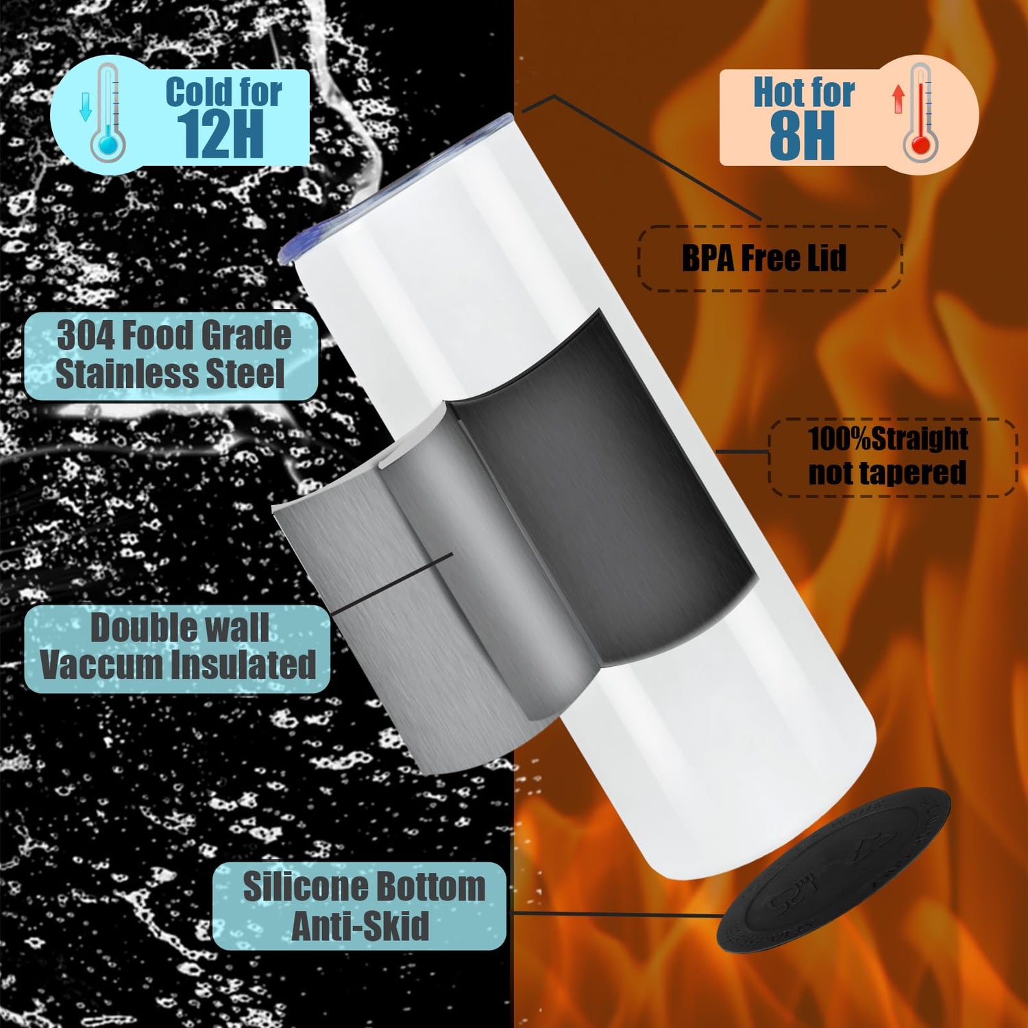 - GREAT INSULATION: Adopting double wall vacuum insulation technology, the insulated skinny tumbler for sublimation can keep your drinks cold for 12 hours and hot for 5 hours. No matter where and when, our skinny tumbler always gives you the best drinks temperature.