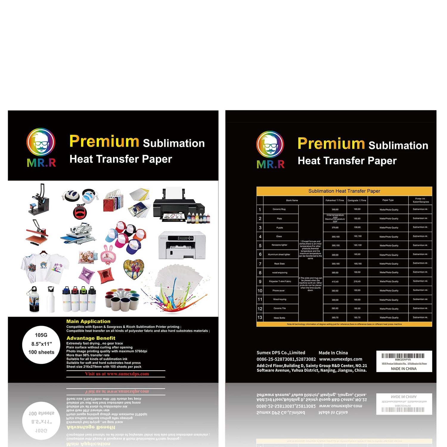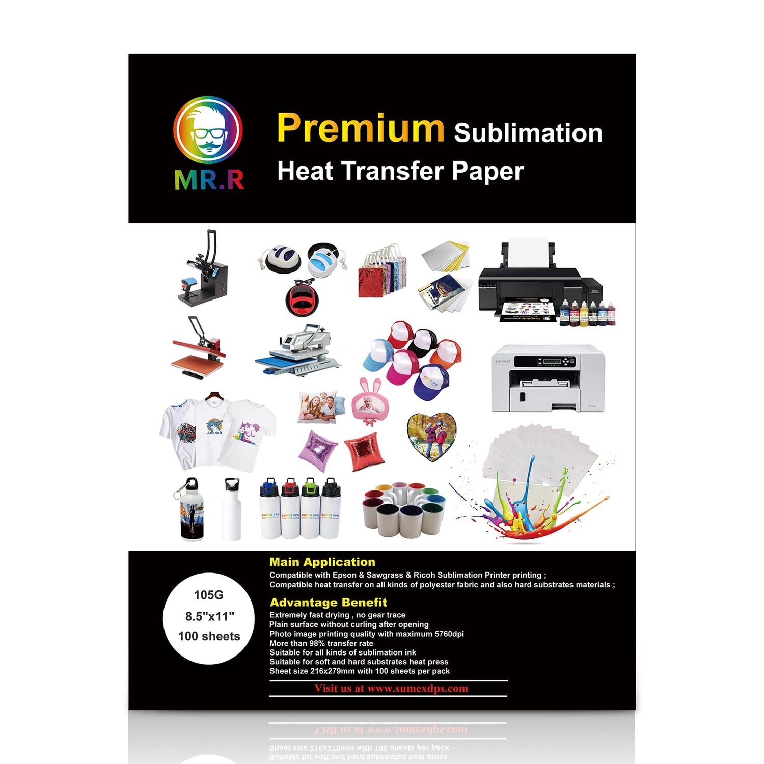 MR.R Premium Sublimation Heat Transfer Paper for Epson and Sawgrass,105gsm 8.5"x11" 100 sheets USA Letter Size per pack