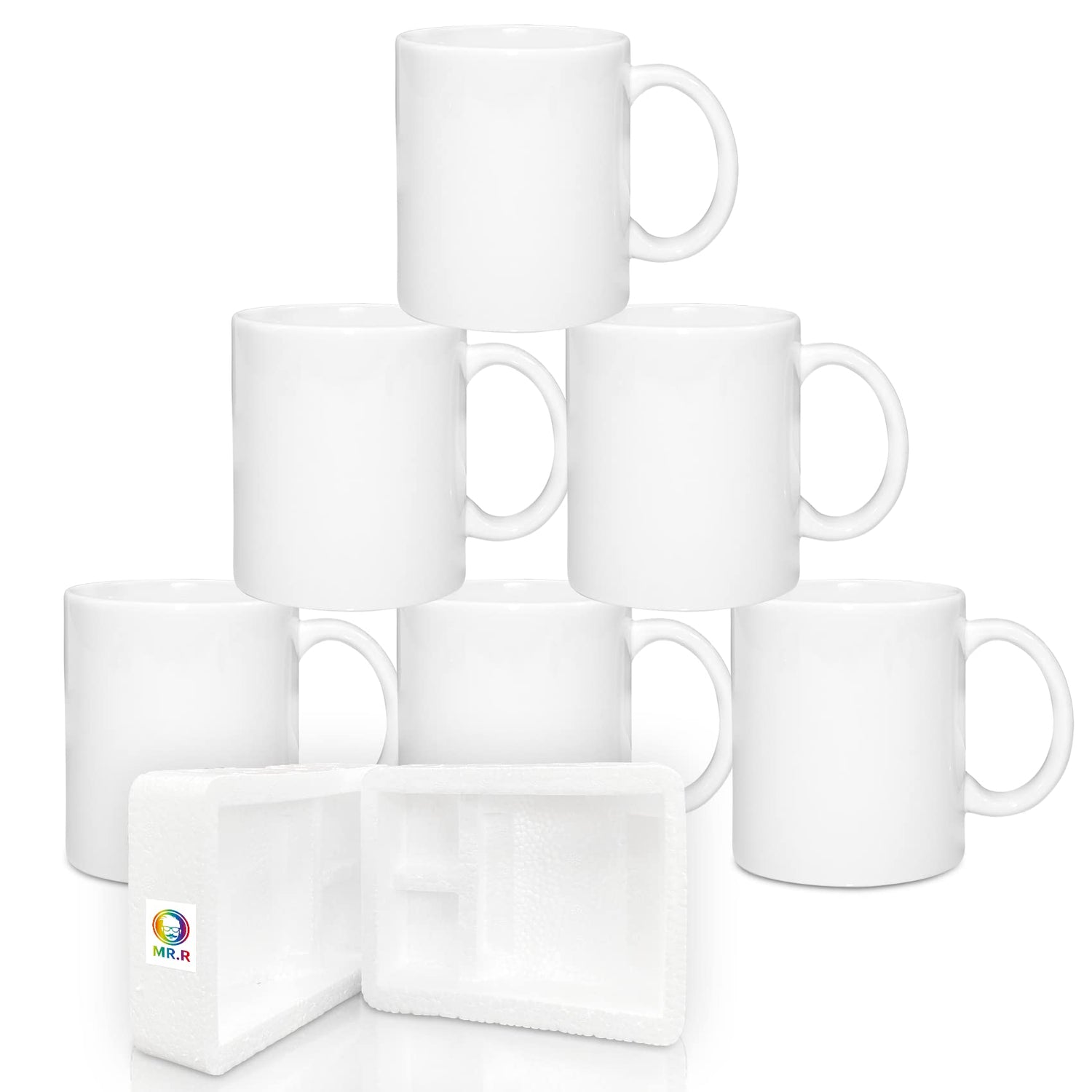 MR.R Set of 6 Sublimation Blanks Dishwasher White Ceramic Coffee Mugs 11oz Blank Ceramic Classic Drinking Cup Mug For Milk Tea Cola Water