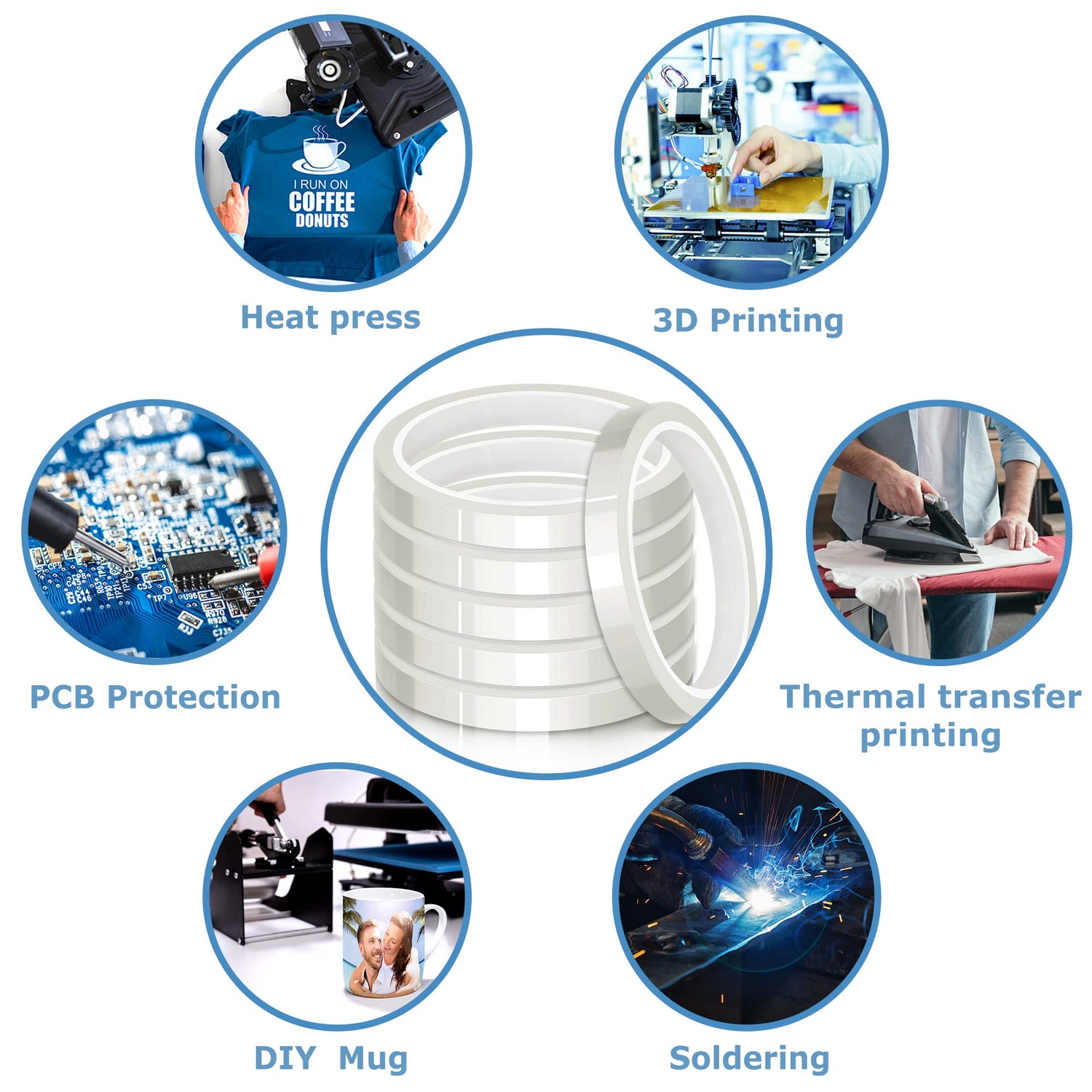 MS WGO High Temperature Tape Heat Tape Heat Resistant Tape Heat Transfer Tape Heat Tape for Sublimation No Residue 10mm X 33m 108ft (Transparent-6 Roll)
