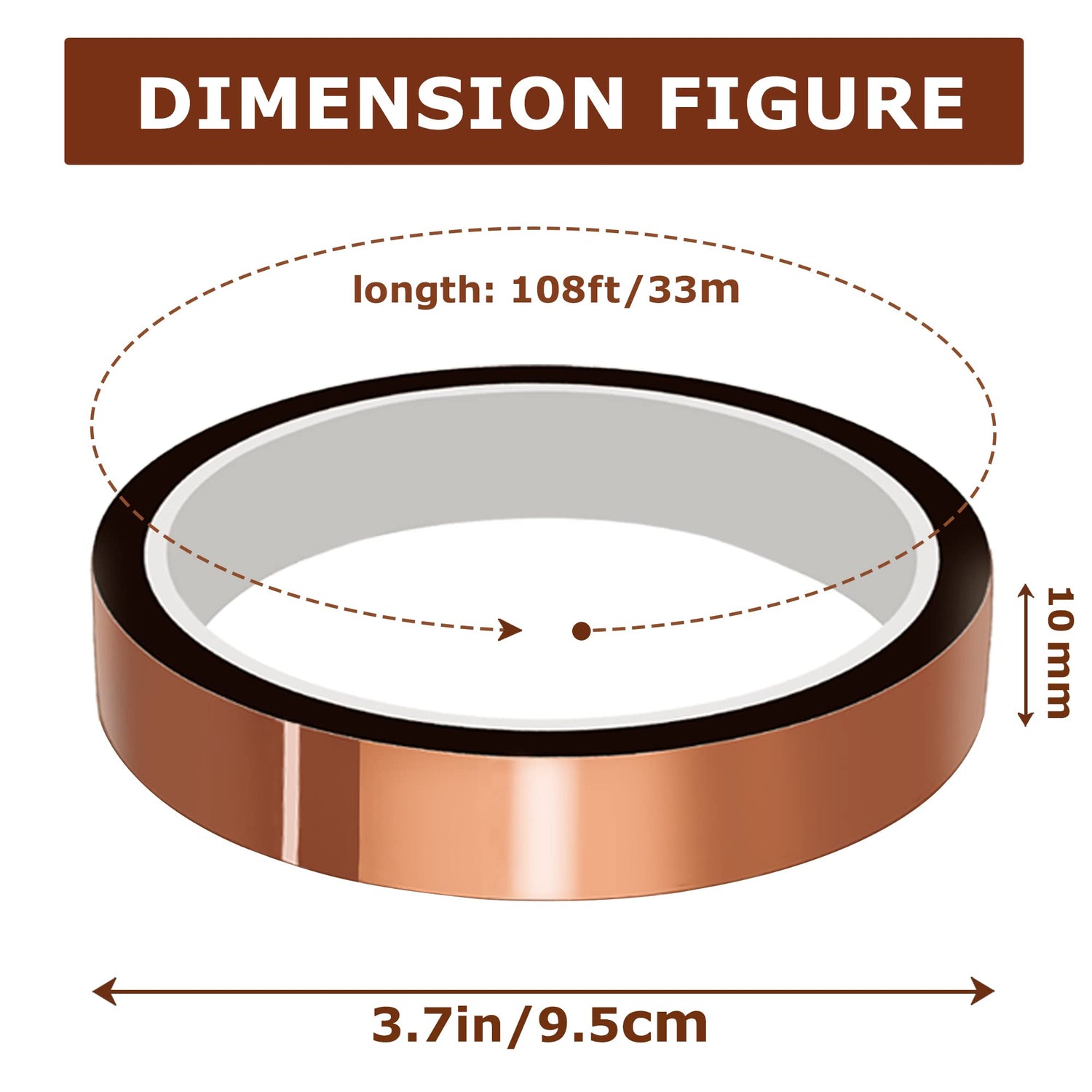 - High Temp Tape Size: Width: about 10mm/0.39in; Length: about 33m /108ft. Heat resistance: Short period Heat Resistance:260℃(500°F)Long period Heat Resistance:220℃(428°F)