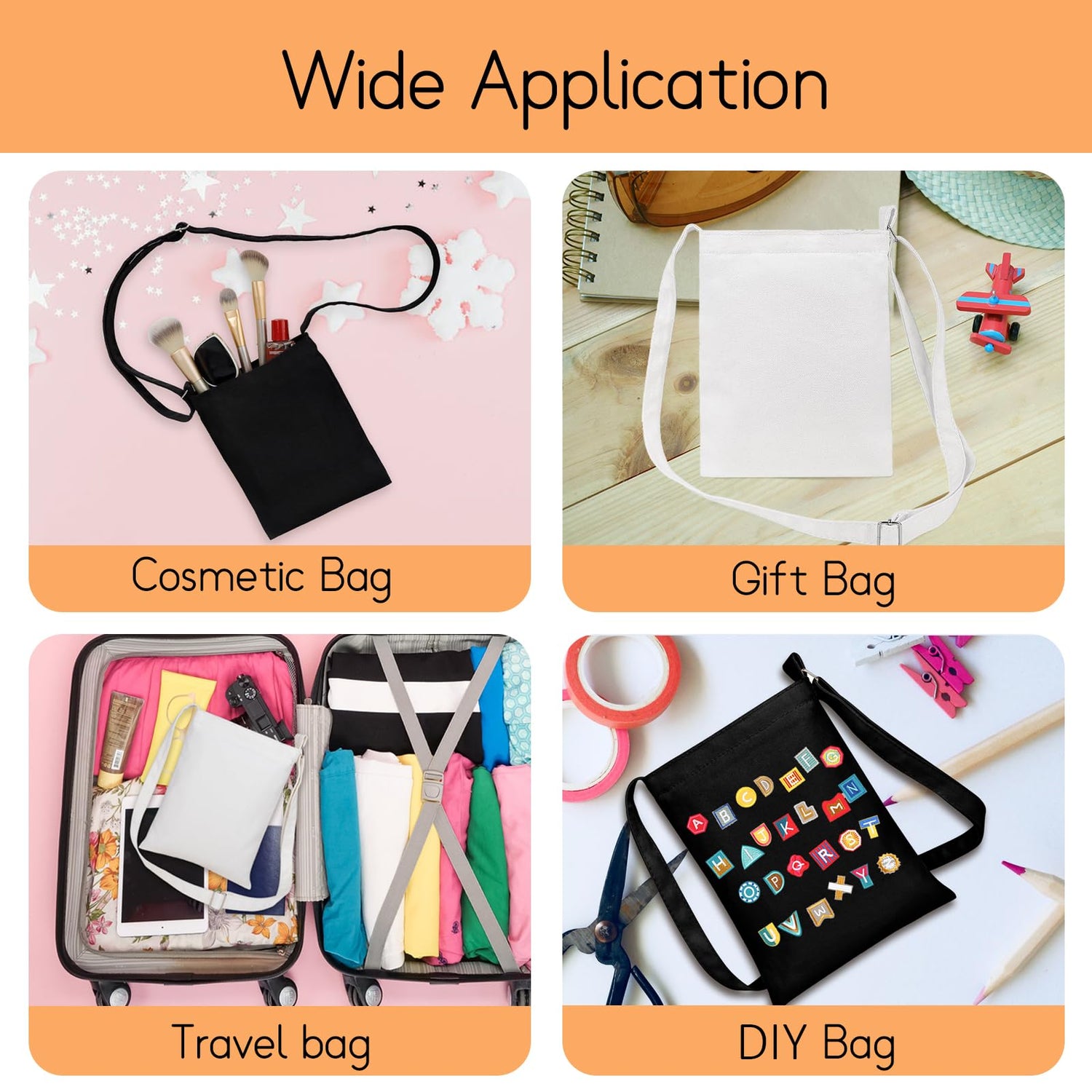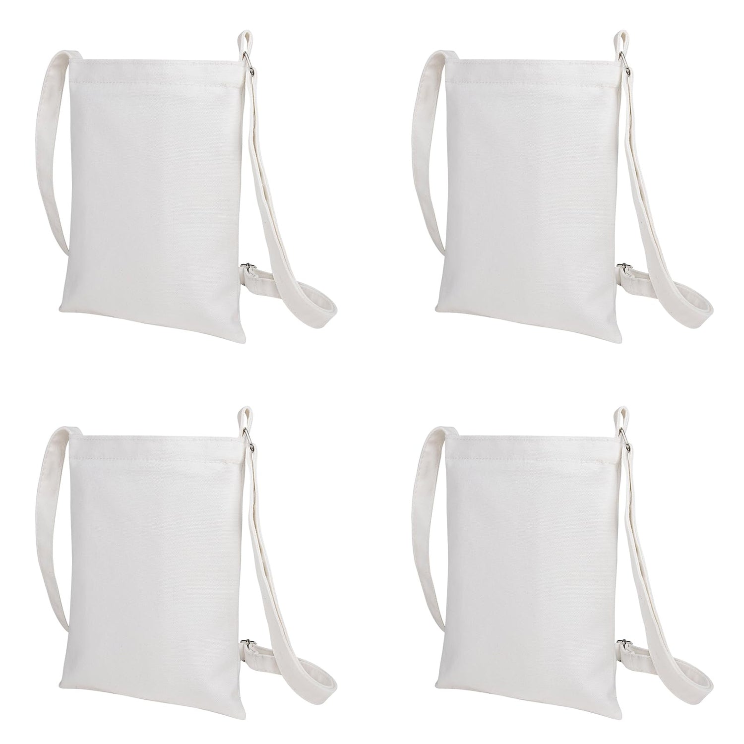 - Price for 4 white canvas cross-body bags, convenient style suitable for many occasions, like traveling, shopping, beach and so on; save your space and time of storing and looking for your stuffs