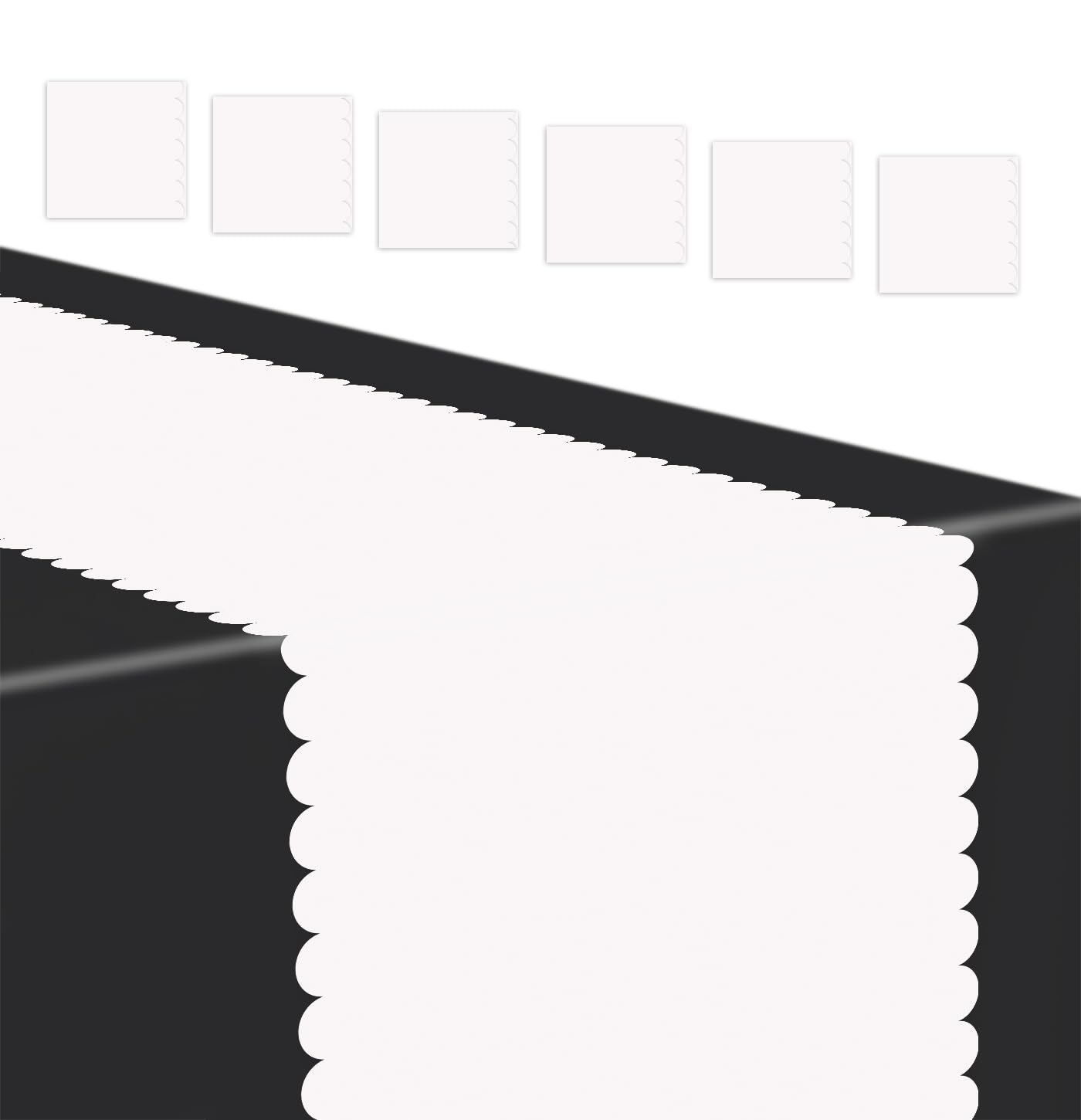 - White table runner: You will get 6 x plastic table runner, and enough quantity to meet daily party needs. The scalloped table runner can be used as table centerpiece decoration, will make the table more unique and design