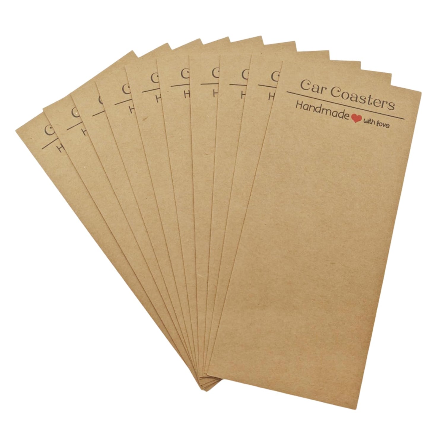 NANSHINE Car Coaster Packaging for Selling,100Pcs Car Coasters Cards with 100Pcs Self-Seal Bags 108Pcs Thank You Stickers,Car Coasters Cards for Selling, Coasters Display Cards (Brown)