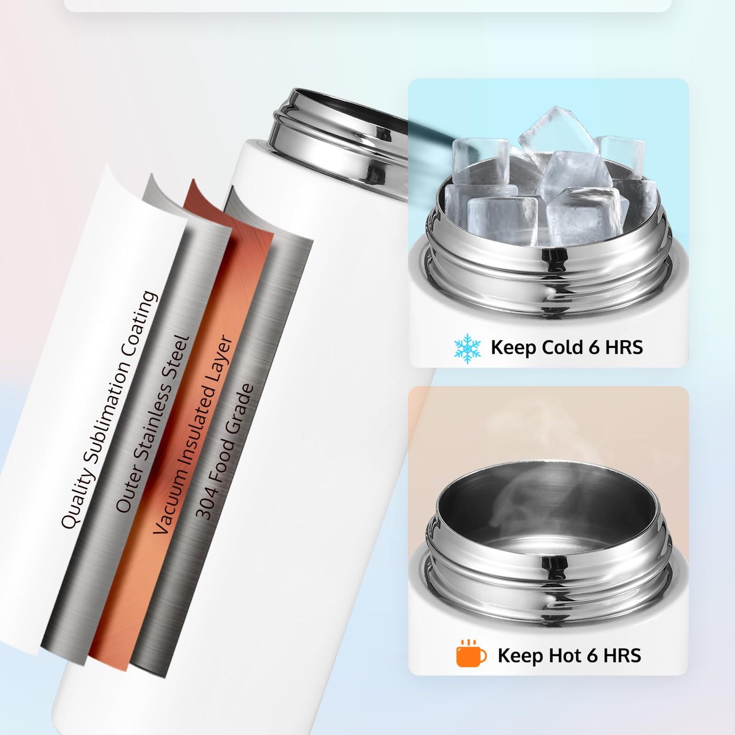 • ♻Premium Quality and Safety - The sublimation water bottle is made of 304 food-grade stainless steel, using BPA-free non-toxic and gentle on kids' teeth straw. Double-walled vacuum insulation keeps drinks hot or cold for hours, perfect for keeping kids' beverage.