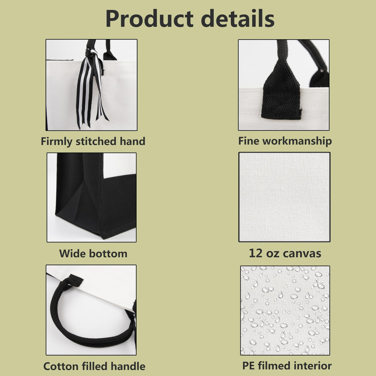 • 【Quality materials】 These tote bags are made of canvas and waterproof material, with a waterproof lining inside to keep the contents clean, a widened bottom and sides to help the bag stand up well and can hold more while maintaining good shape, and all seams are reinforced and sewn to ensure their durability.