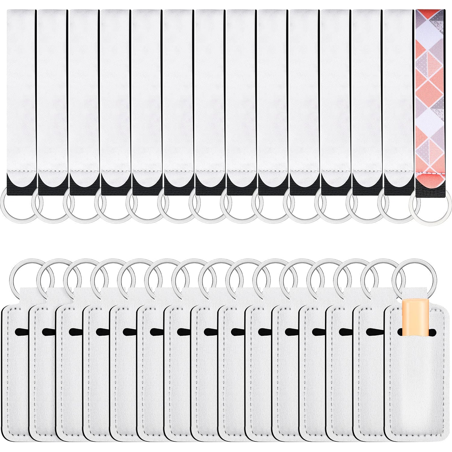 Patelai 30 Pcs Sublimation Blanks Wristlet Lanyards and Lipstick Holder Keychains Set, Blank Neoprene Wristlet Sublimation Lanyards Strap Blank Lipstick Keychain Holder for DIY Craft Heat Transfer
