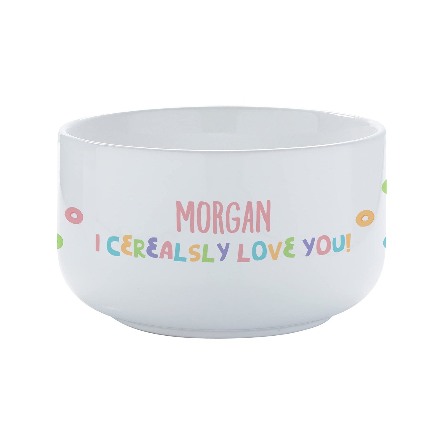 Personalization Universe I Cerealsly Love You 14oz Kids Cereal Bowl - Customizable, Dishwasher and Microwave Safe, Chip-Resistant Stoneware Bowl Perfect for Cereal, Soup, Snacks and More