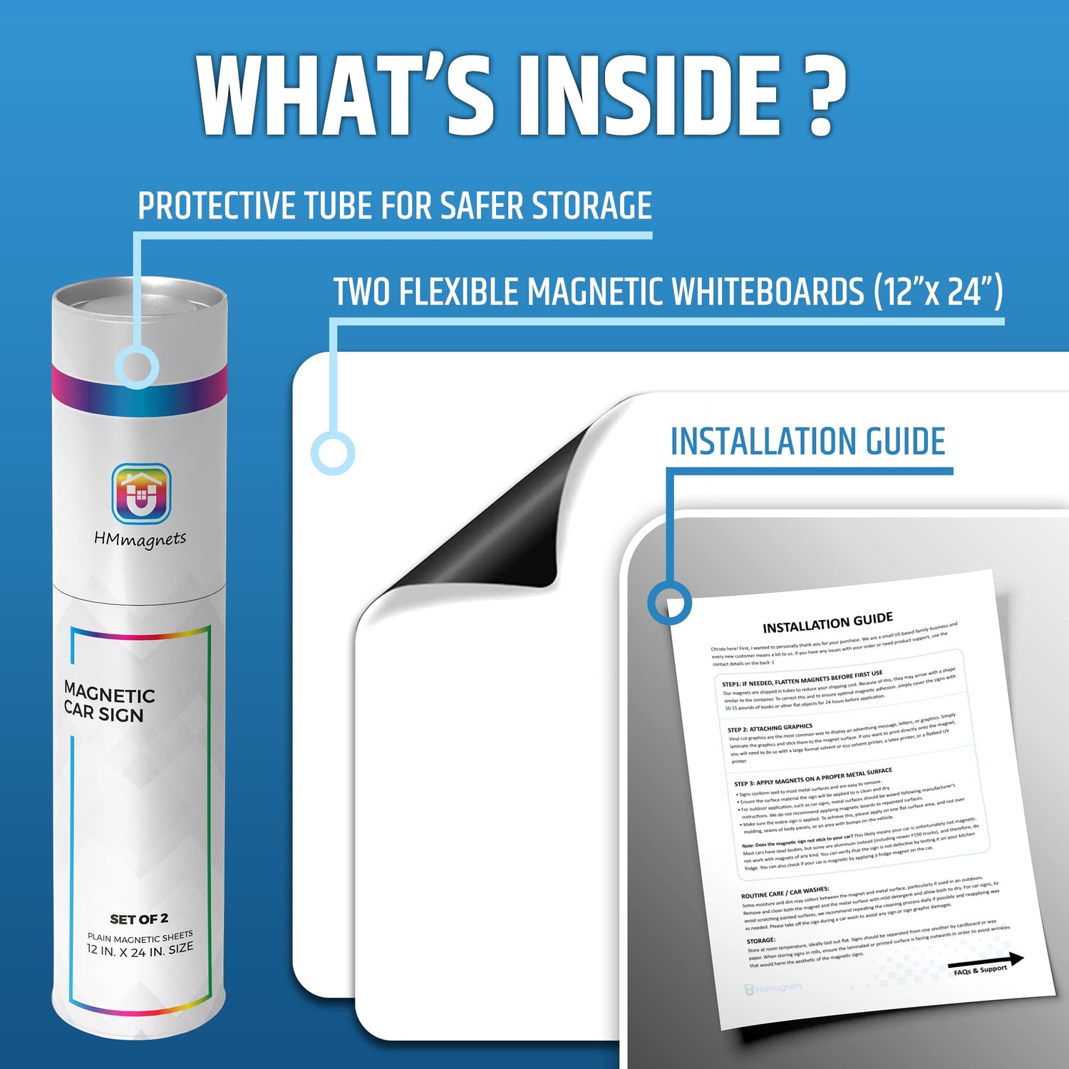 - LAYS FLAT - STRONG MAGNETIC CAR SIGN (SET OF 2): HMmagnets designed these magnetic whiteboards to lay flat on your vehicle while maintaining a strong hold. They also work on fridges and are ideal for covering logos to meet HOA rules.