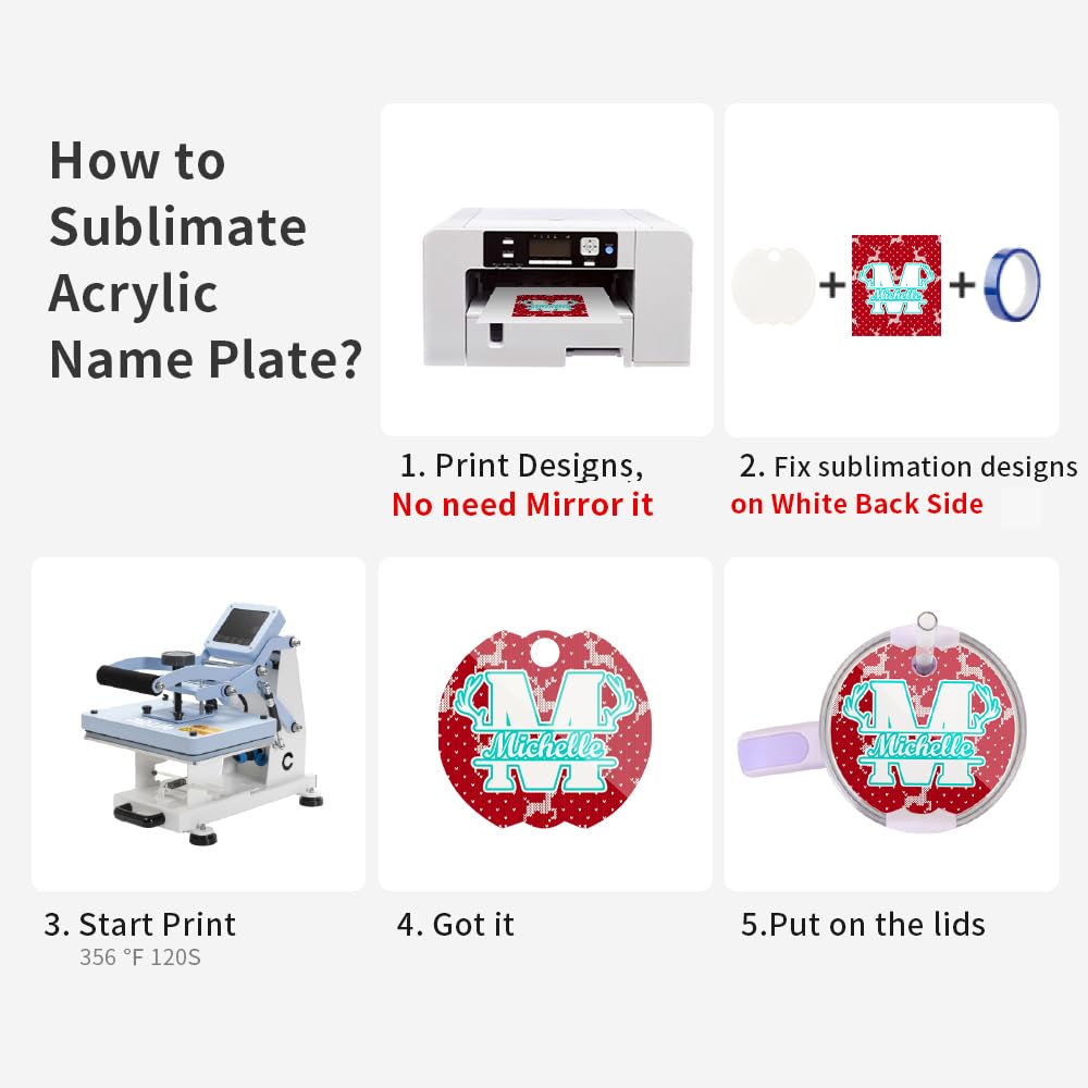 - Easy to Print:We suggest setting 356 F,60 S for heat transfer by heat press machine.The sublimation ornaments blanks with protective film both sides,please remove it before printing.The back white side is for printing,the glossy front side cannot printing.No need mirror the print designs.