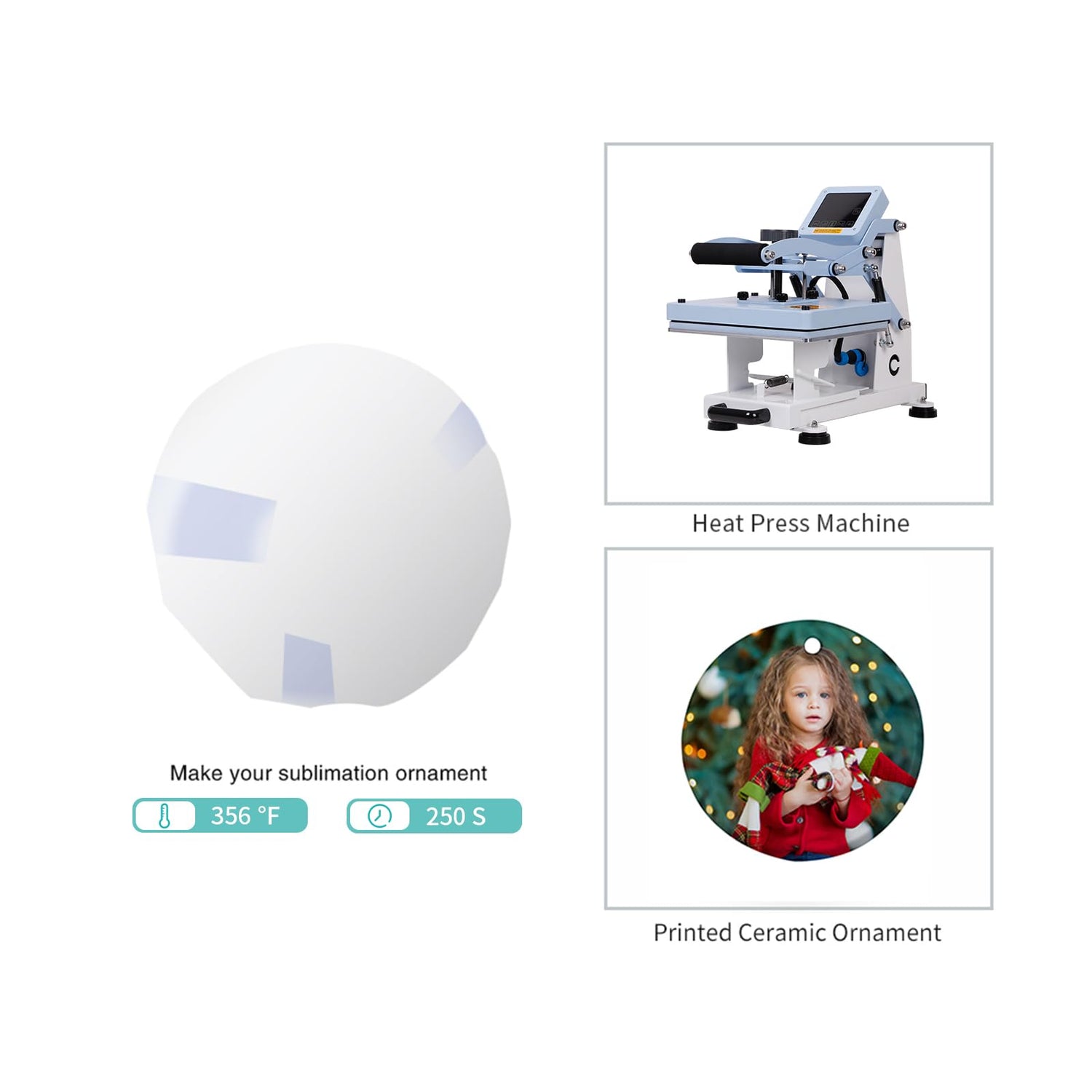 - Materials:The blank ornaments made of quality ceramic,with sublimation coating,both sides ready for heat transfer printing.