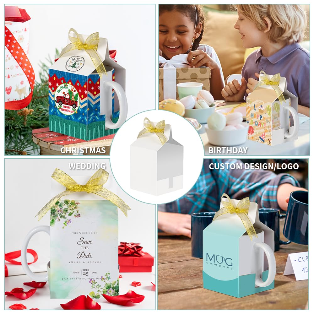 PYD Life 20 Pack Sublimation Mugs Blanks Gift Boxes Matte White 3.3" x 3.2" x 5.9" 11 OZ Sublimation Coffee Mugs Packing Boxes with Golden Ribbon for Heat Press Transfer