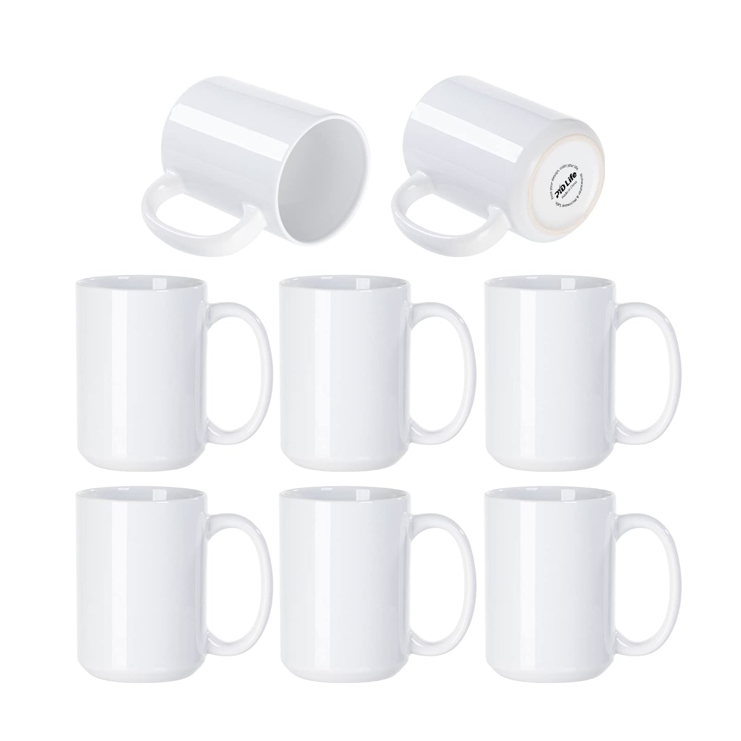 PYD Life 8 Pack 15 OZ Sublimation Ceramic Mugs Blanks Coffee Mugs White Photo Cups Bulk for Cricut Mug Press Print
