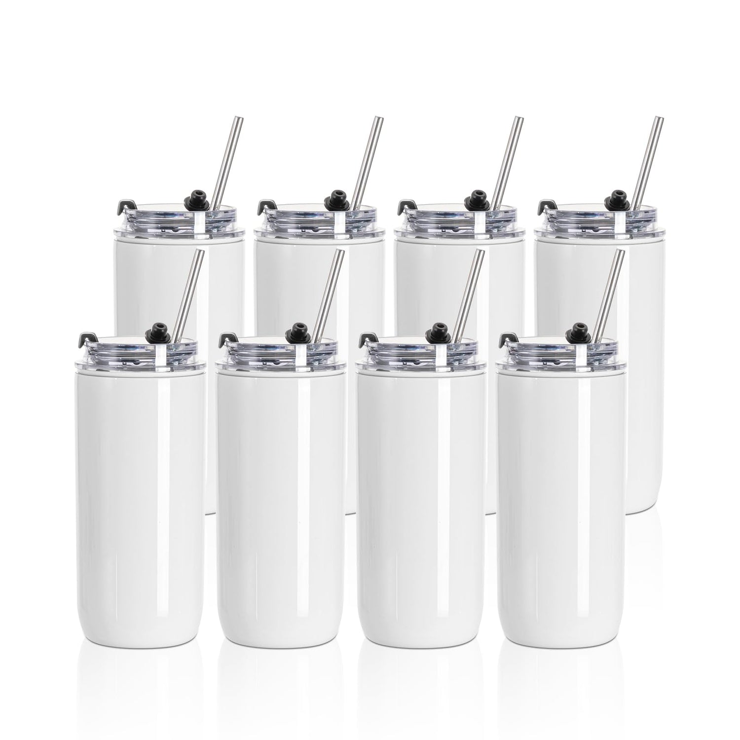 PYD Life 8 Pack Sublimation Kids Tumblers Blanks Bulk 17 OZ White Stainless Steel with Lid and Metal Straw for Tumbler Heat Press Sublimation Oven Print