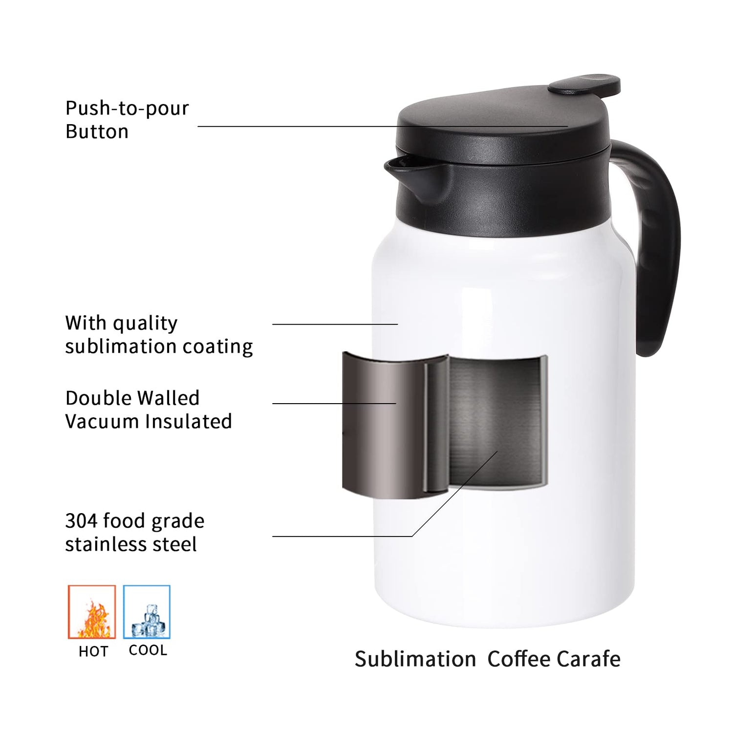 • Perfectly Customized Gifts:The sublimation coffee carafe is very nice as the gifts for your friends,family,and you can sublimate ANY designs you want.