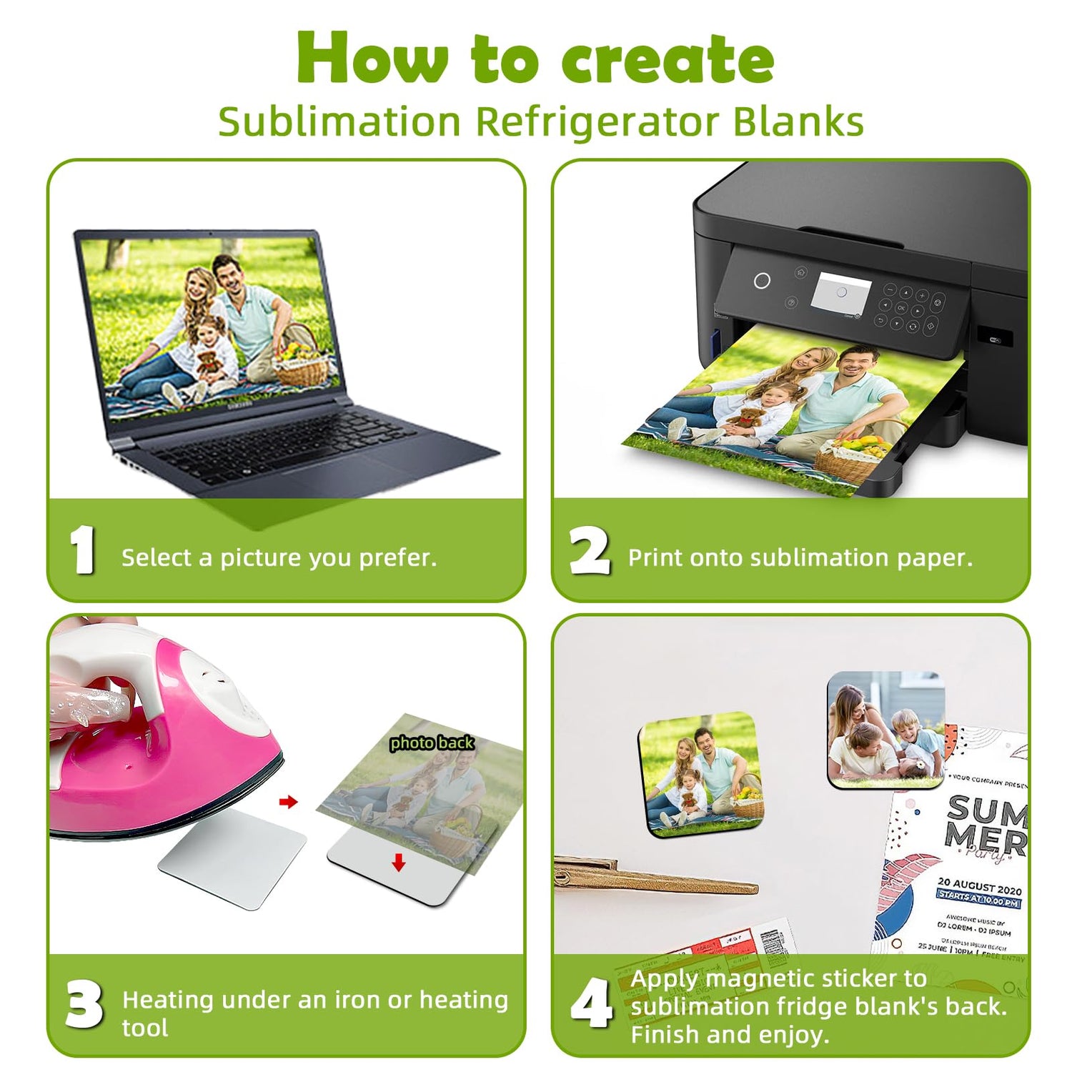 • Professional Sublimation Design: The blank refrigerator magnet are specifically tailored for sublimation printing, allowing you to unleash your creativity. Print your favorite designs such as couple photo magnets, personal photo magnets.Achieve stunningly clear and vibrant results by following the recommended guidelines: press temperature of 180-190 degrees Celsius (356-374 degrees Fahrenheit), press time of 50-70 seconds, and apply medium pressure.