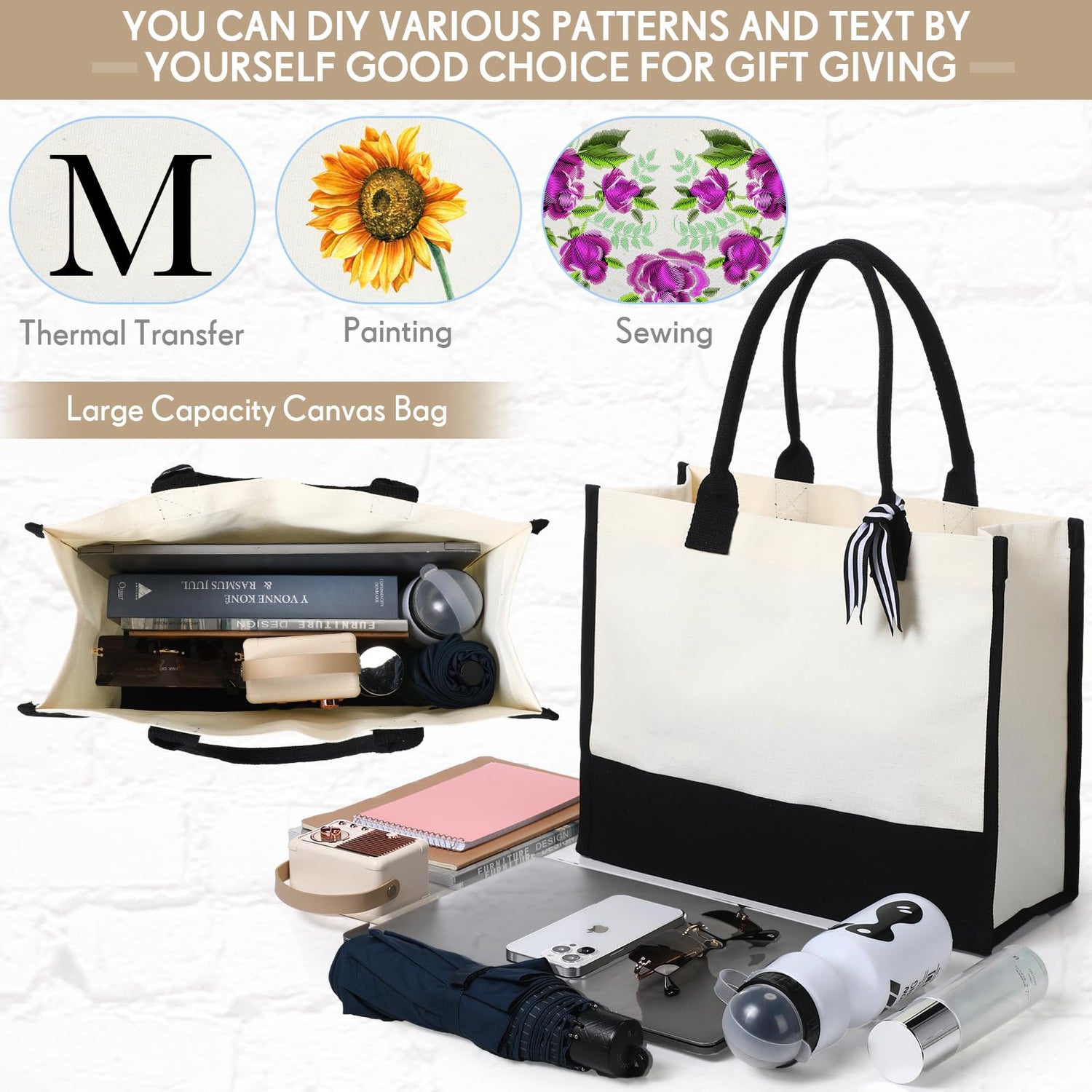 - Enjoy DIY Fun: these large blank tote bags and makeup bags are designed to be simple and stylish, elegant and chic blank surfaces are suitable for you to paint, embroider or print meaningful patterns and words, show your own style, bring easy DIY time to make exquisite gifts for your friends, family, colleagues and bridesmaids gifts; Enjoy hot transferring at 165 degrees Celsius for 1.2 seconds