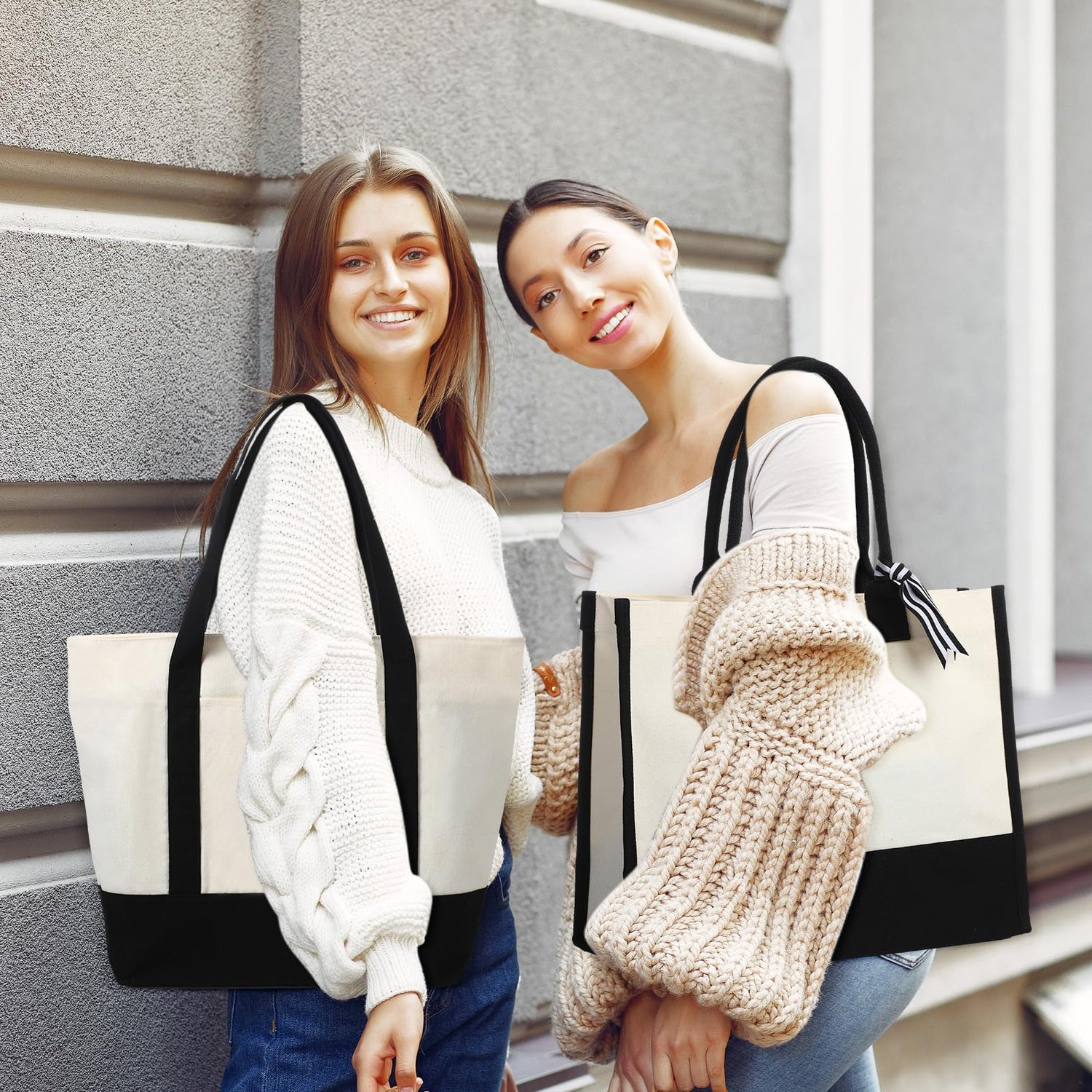 - Package Contents: you will receive 1 large canvas tote bag, 1 large tote bag, 1 handle makeup bag and 1 rectangular makeup bag, a total of 4 bags, different bag shapes enough to meet your daily needs, and you can share them as practical gifts with your friends, family and others