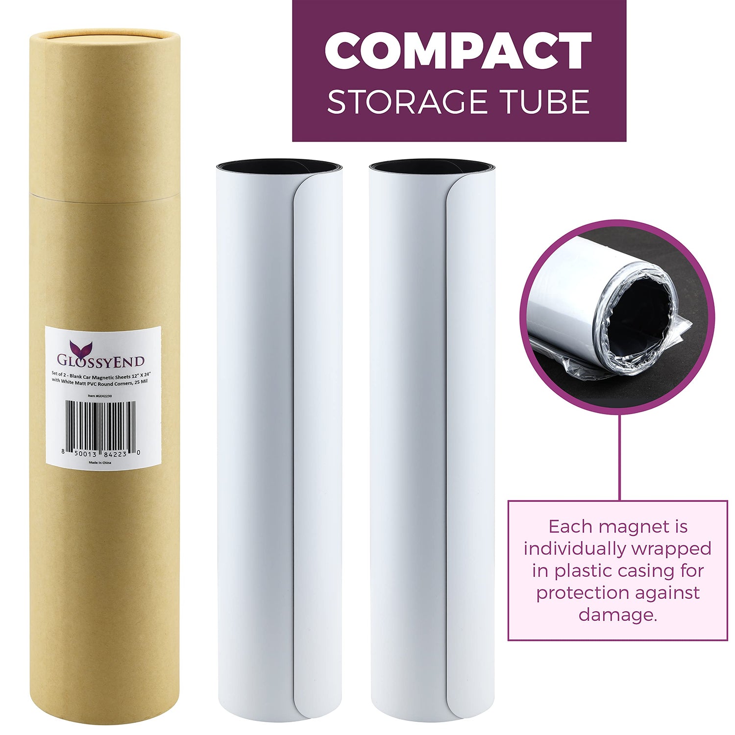 Set of 2 – 24” X 12” Car Door Magnets, Magnetic Car Signs, Flexible Magnetic Signs for Vehicles, White PVC Finish and Round Corners, Strong Durable Car Magnets, Magnetic Thickness 30 Mil.