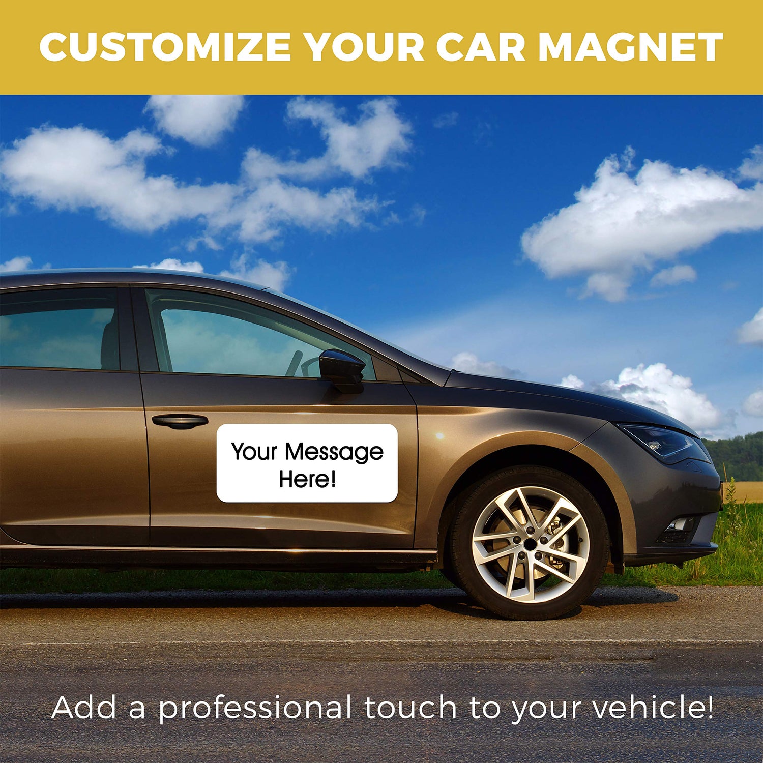 • Set of 2 – Car Door Magnets, Magnetic Car Signs, Flexible Magnetic Signs for Vehicles with White PVC Finish and Round Corners, High Quality Durable Car Magnets - Car Door Magnets Are Great for Advertising Business & Much More.