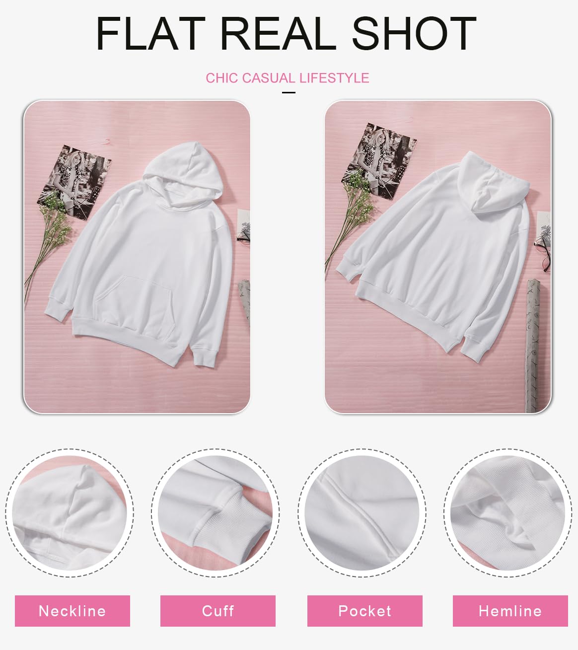 SHEWIN Womens Hoodie Pullover Long Sleeve Solid Fleece Fashion Hoodies Sweatshirts Cozy Lightweight Fall Oversized Sweatshirt for Teen Girls,US 16-18(XL),White