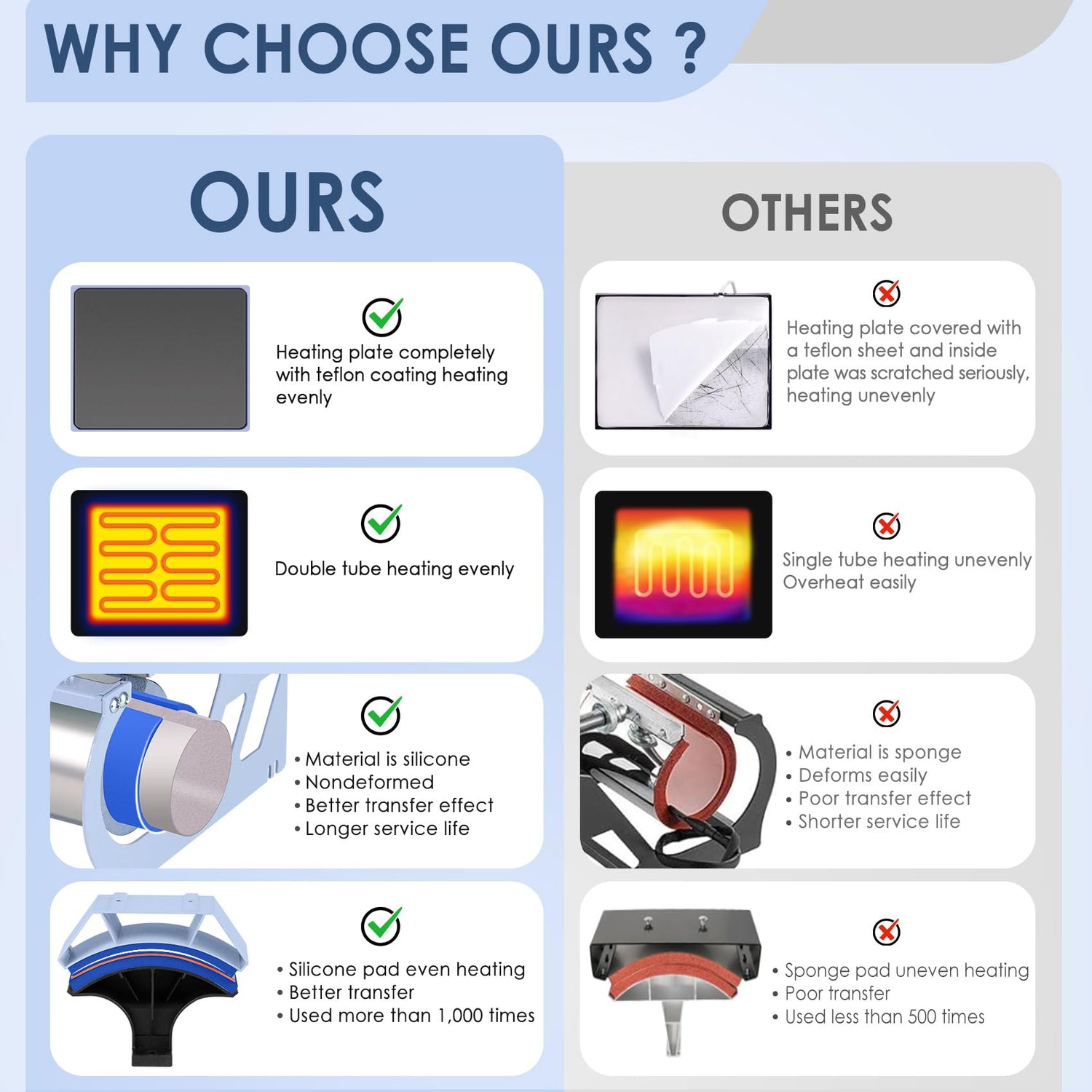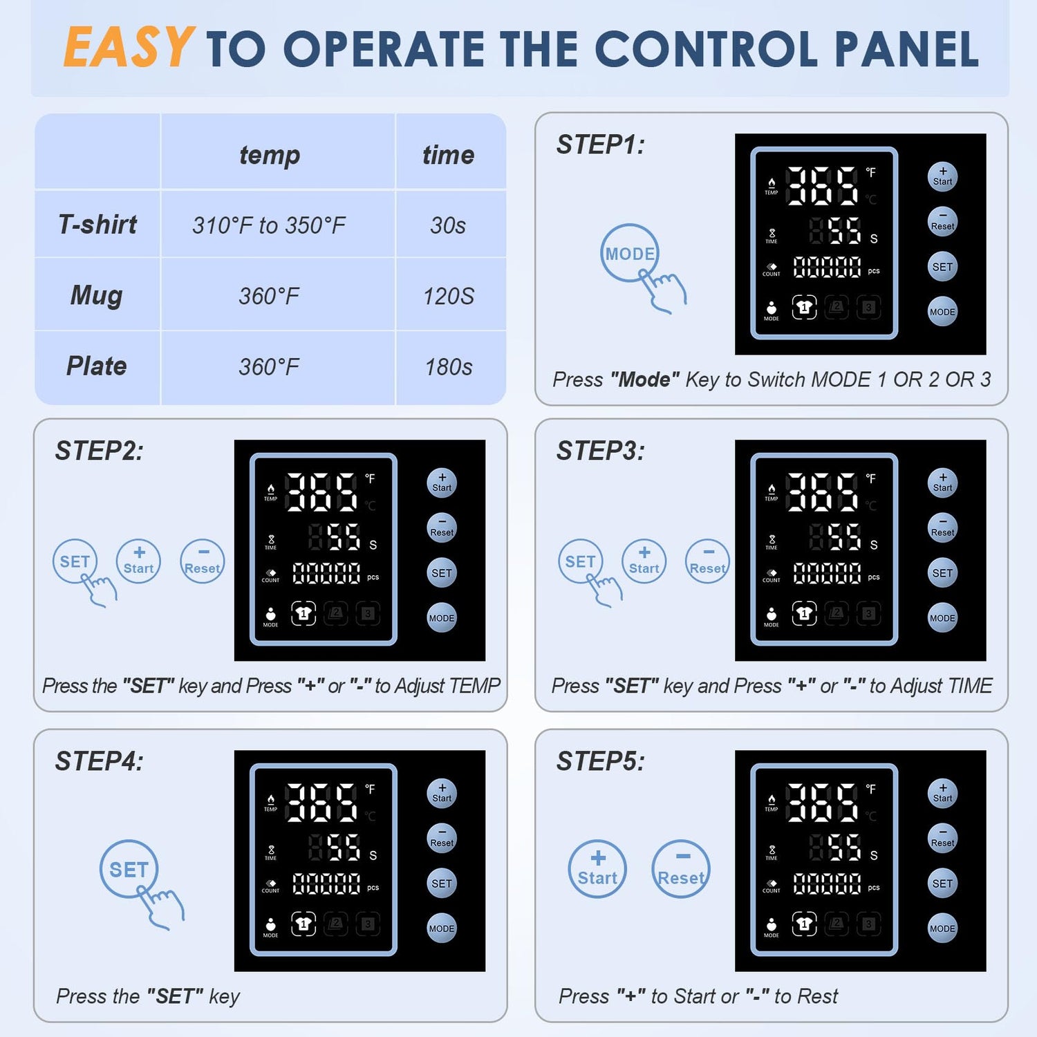 - Heat press has all the necessary accessories to meet your business needs.