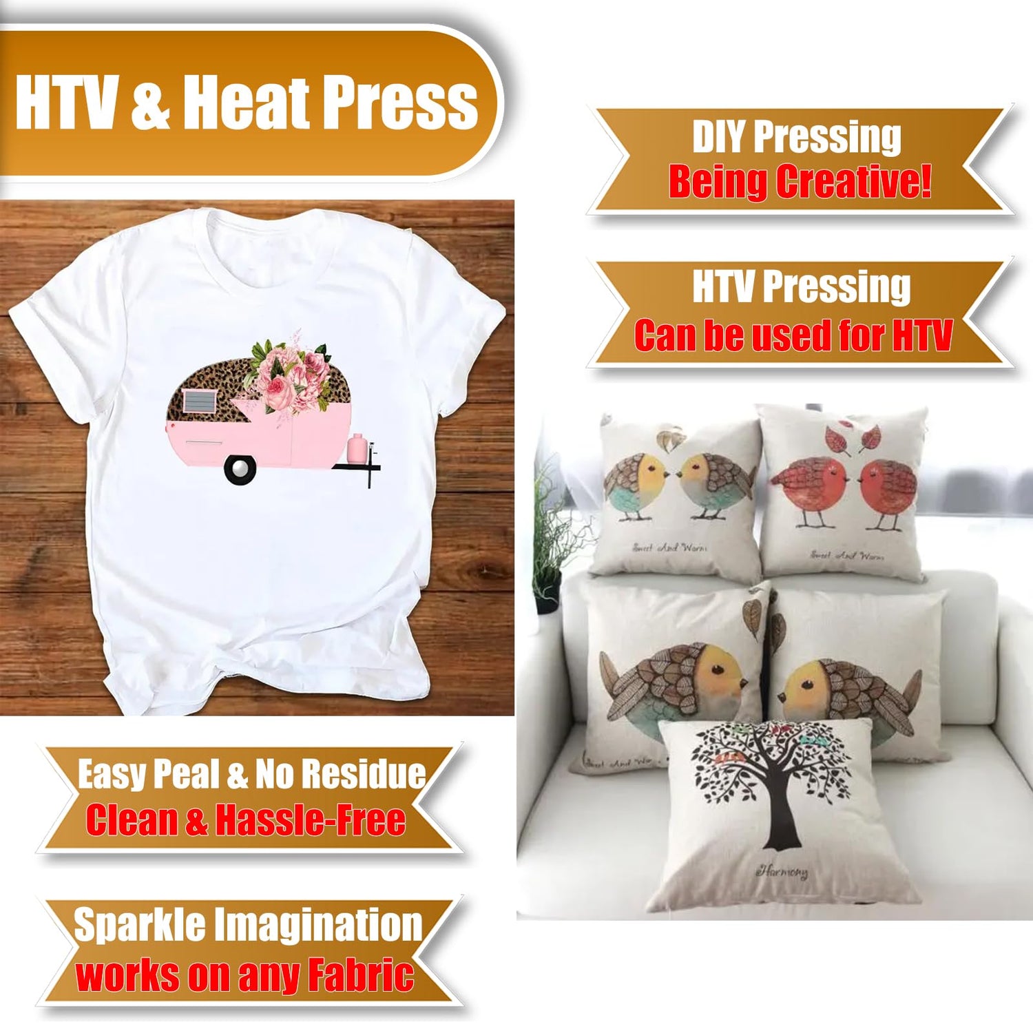 • Peal off clean and no residue, perfect for HTV pressing, heat press and DIY press.