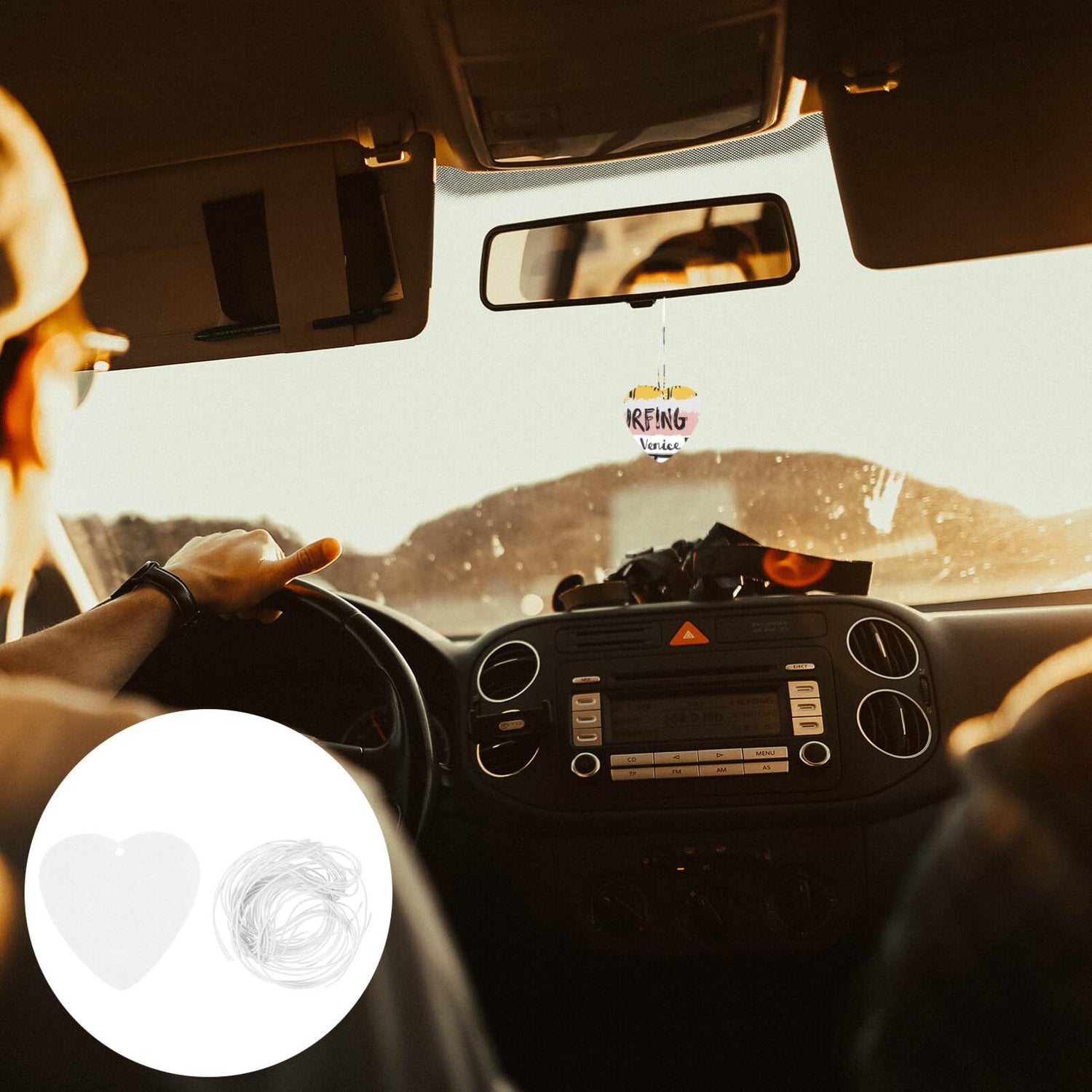STOBOK Sublimation Blanks - Heart Shaped Blanks Sheets Car Scented Hanging Card Diy Air with 5 Elastic Rope for Car Home Decoration