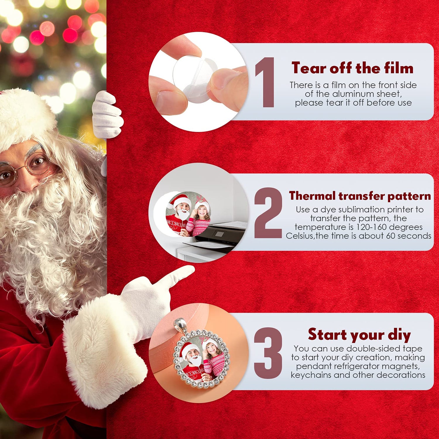 - Easy to operate: you can tear off the film on the front of the round aluminum plate, using sublimation printer to transfer the photo on the aluminum sheets, applying double-sided adhesive tape to the other side of the aluminum sheet, then sticking it to your bracelet or necklace to decorate your jewelry or other items