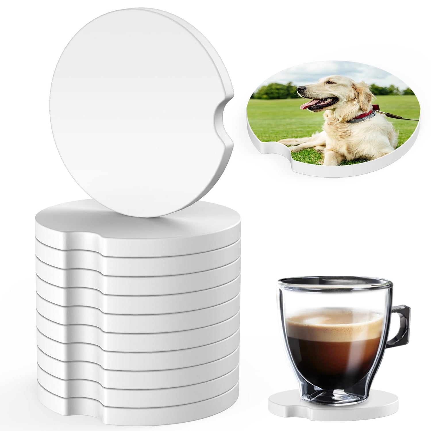 Sublimation Blanks Car Coasters, 12pcs Absorbent Ceramic Car Cupholder Coasters with A Finger Notch for Easy Removal, Keep Vehicle Free from Cold Drink Sweat, Stain and Spill