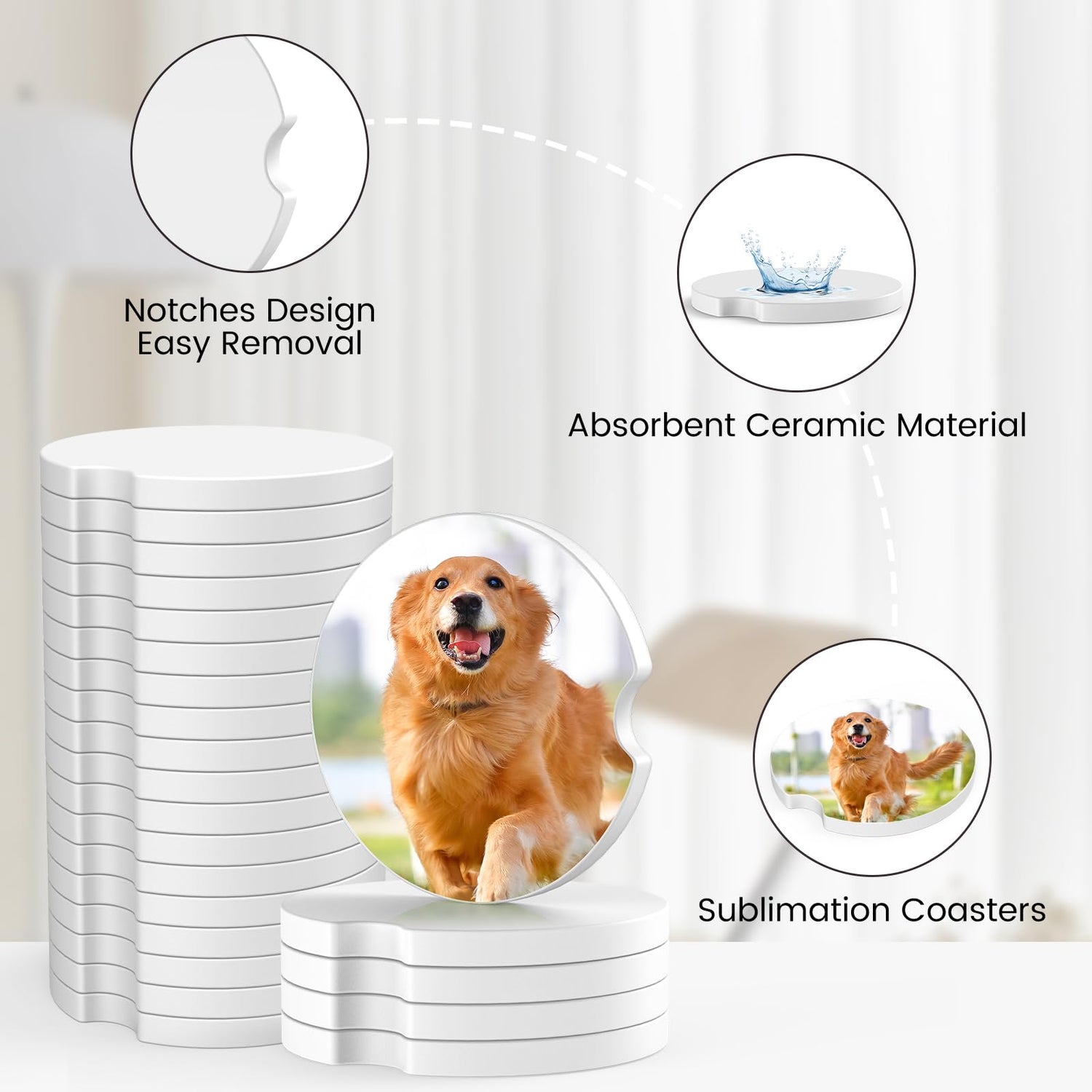 - Package Include: 12 pcs well-designed car coaster. High quality Durable ceramic – Ultra Water Absorbent - You can DIY the pattern yourself on the ceramic coaster (only for thermal transfer). Kindly noted heated about 400 ℉(200 ℃ ) for 200 seconds.