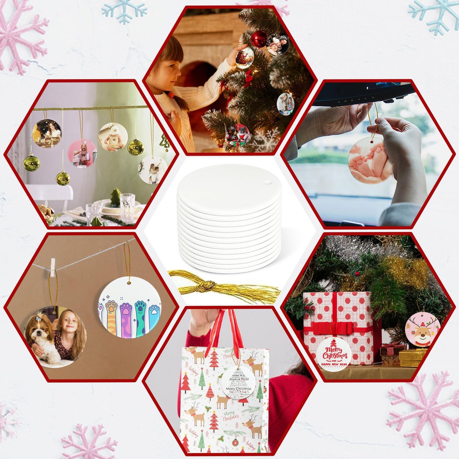 • [Christmas Decorations Indoor] Our sublimation blank ornaments kit includes 12 pieces of sublimation ornaments (3 inch diameter round) and 12 Gold strings. There are enough quantity to meet your different use and replacement needs. You can enjoy the fun of crafting with your friends and family