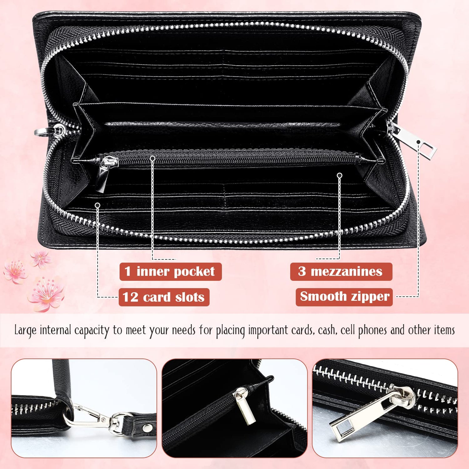 - Large Internal Capacity: you will 2 pieces women's zipper card holders, each of which has 12 card slots, 1 internal pocket, and 3 compartments to meet your needs for important cards and cell phones, practical and utility for you to use