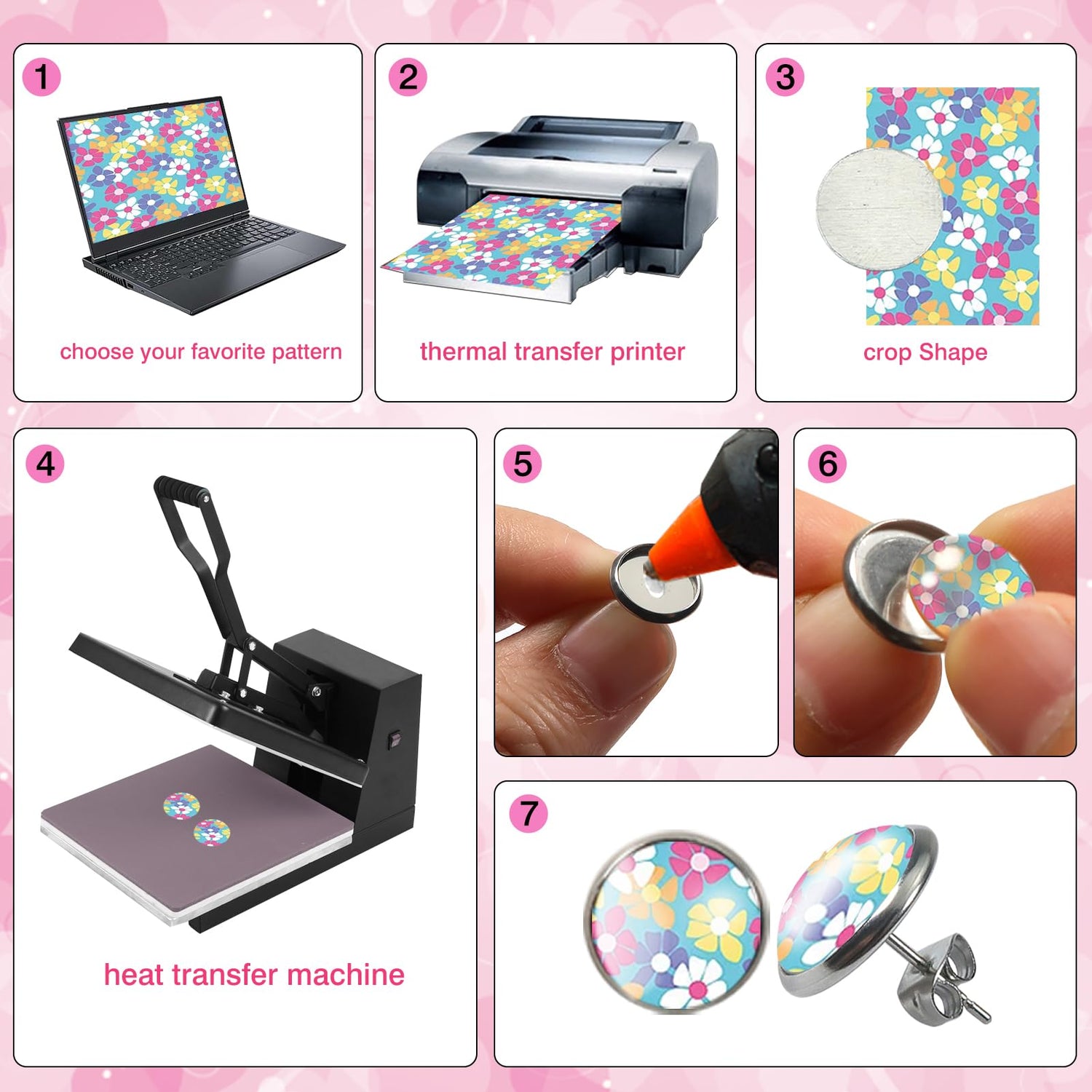 - Package Include: The sublimation earring set includes 50pcs sublimation earring blanks, 50pcs blanks bezel trays, 100pcs earring backs, 50pcs glass cabochons, 50pcs stickers and 1pcs hot glue. Enough sublimation accessories can meet your different jewelry making needs