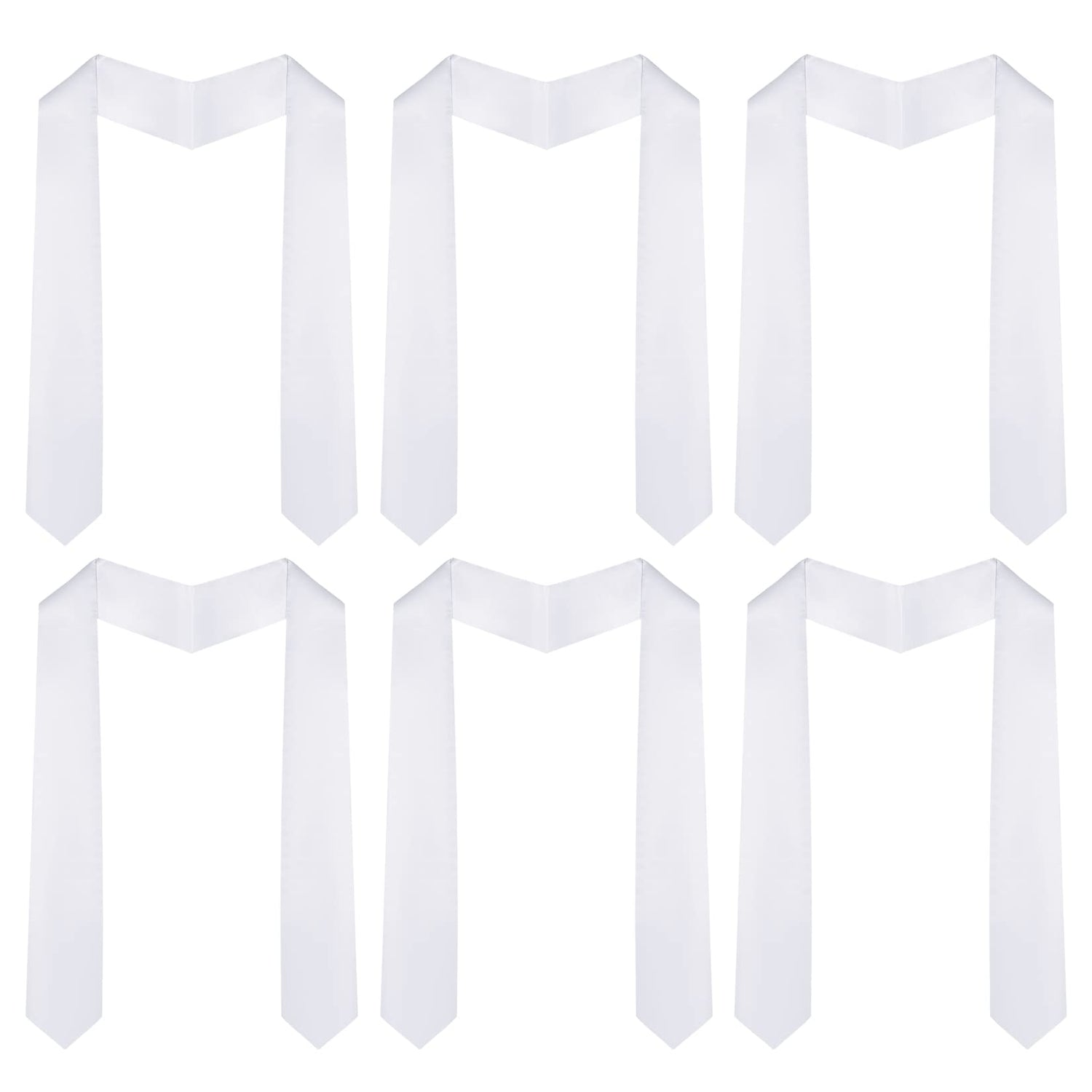 Tongcloud 6pcs 70 Inch Unisex Graduation Stole Sash Adult Plain Sublimation Graduation Stole Plain Satin Stole for Men Women(White)