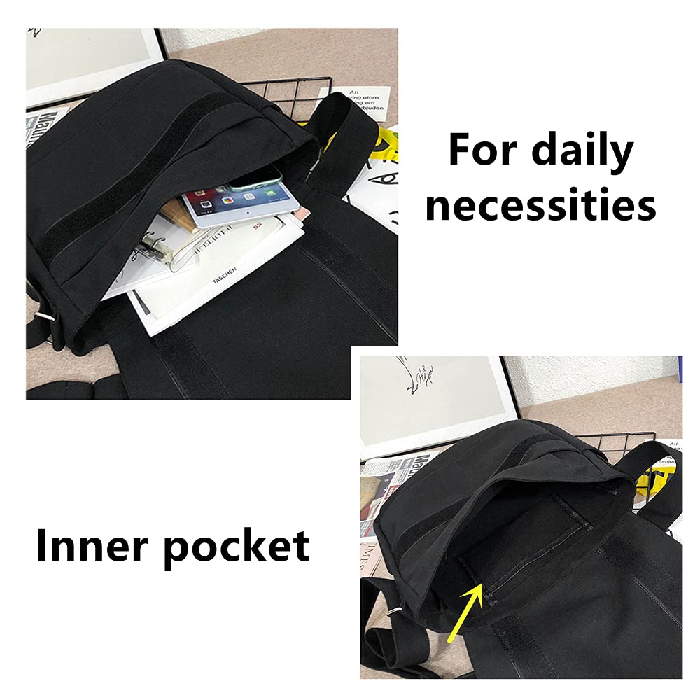 Minimalist style - it's good to add some funny decoration if you like - hang your favorite toy, color painting or pin some cartoon brooches on it. This canvas crossbody bag can carry what you daily need, like e-book, magazine, folding umbrella, phone, purse, etc. When you need a bag to go with your outfit, this is probably the one easiest for match.