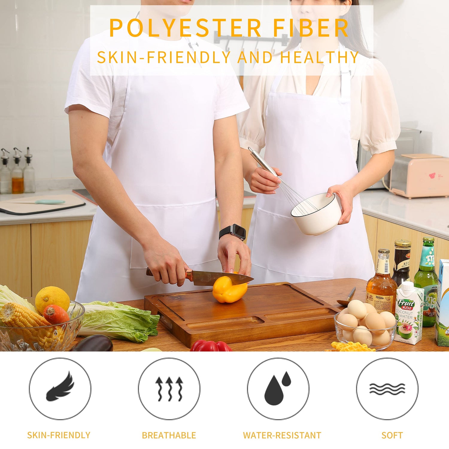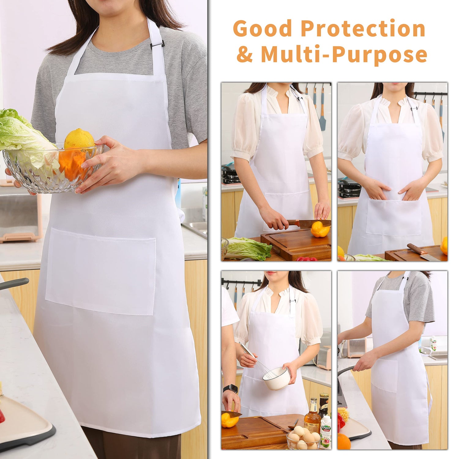- Good Protection: Large bib Apron that covers from chest to knee provides great coverage and protection from kitchen grease spills and food stains. Note: Do Not place apron nearby any heated cooking ware or flame!